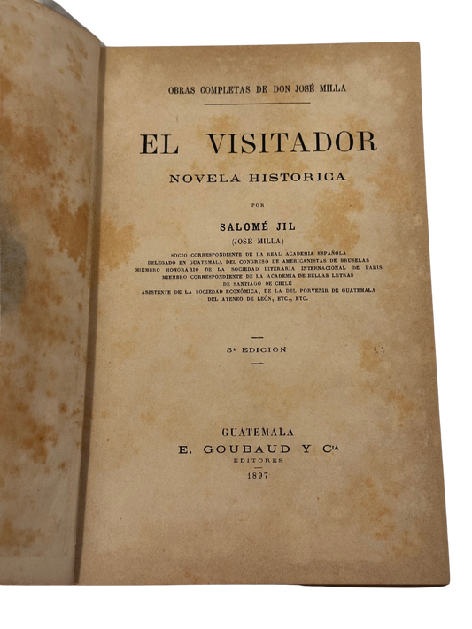 "El Visitabdor Novela Historica" (Salome Jil/Jose Milla) 3rd Edition, Volume 1 (1897)