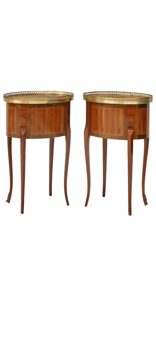 Pair of French Louis XVI-Style Marquetry Bedside Tables with Brass Gallery