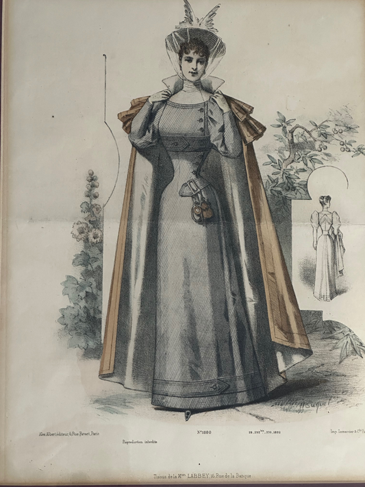Antique Parisian Fashion Print - Woman in a Blue Dress