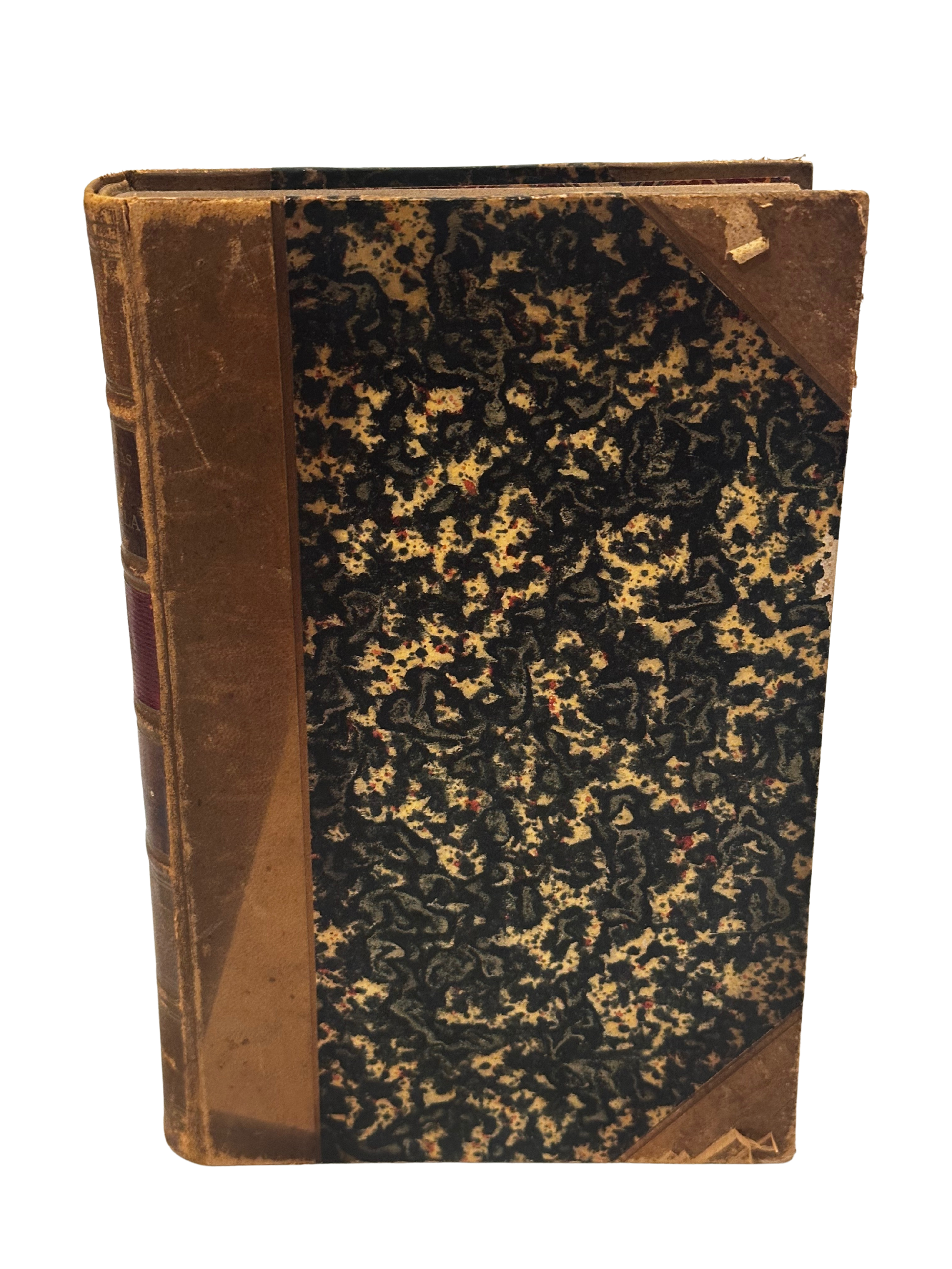 Half leather with marbled boards and endpapers (classic late 19th century style)