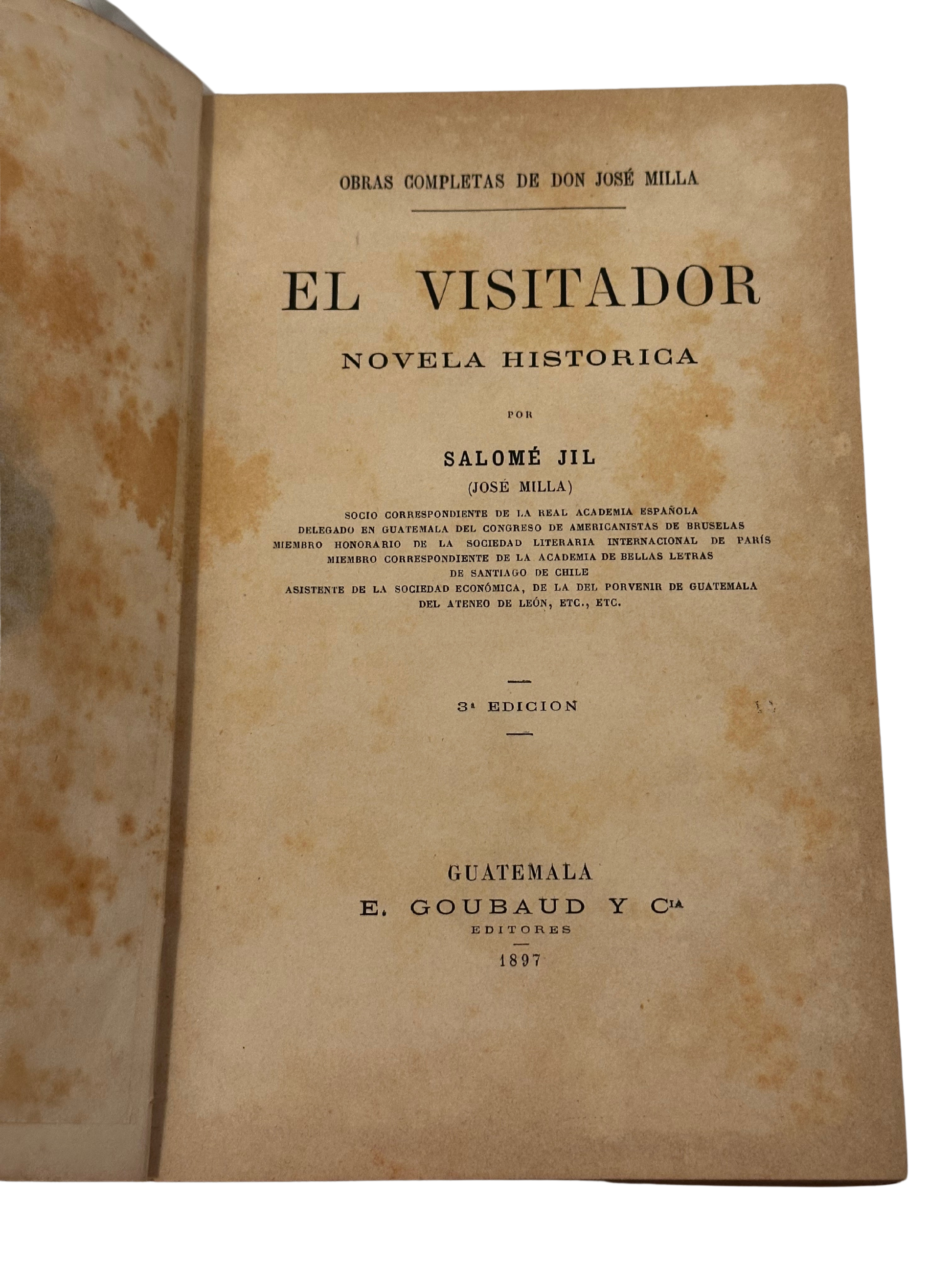 "El Visitabdor Novela Historica" (Salome Jil/Jose Milla) 3rd Edition, Volume 1 (1897)