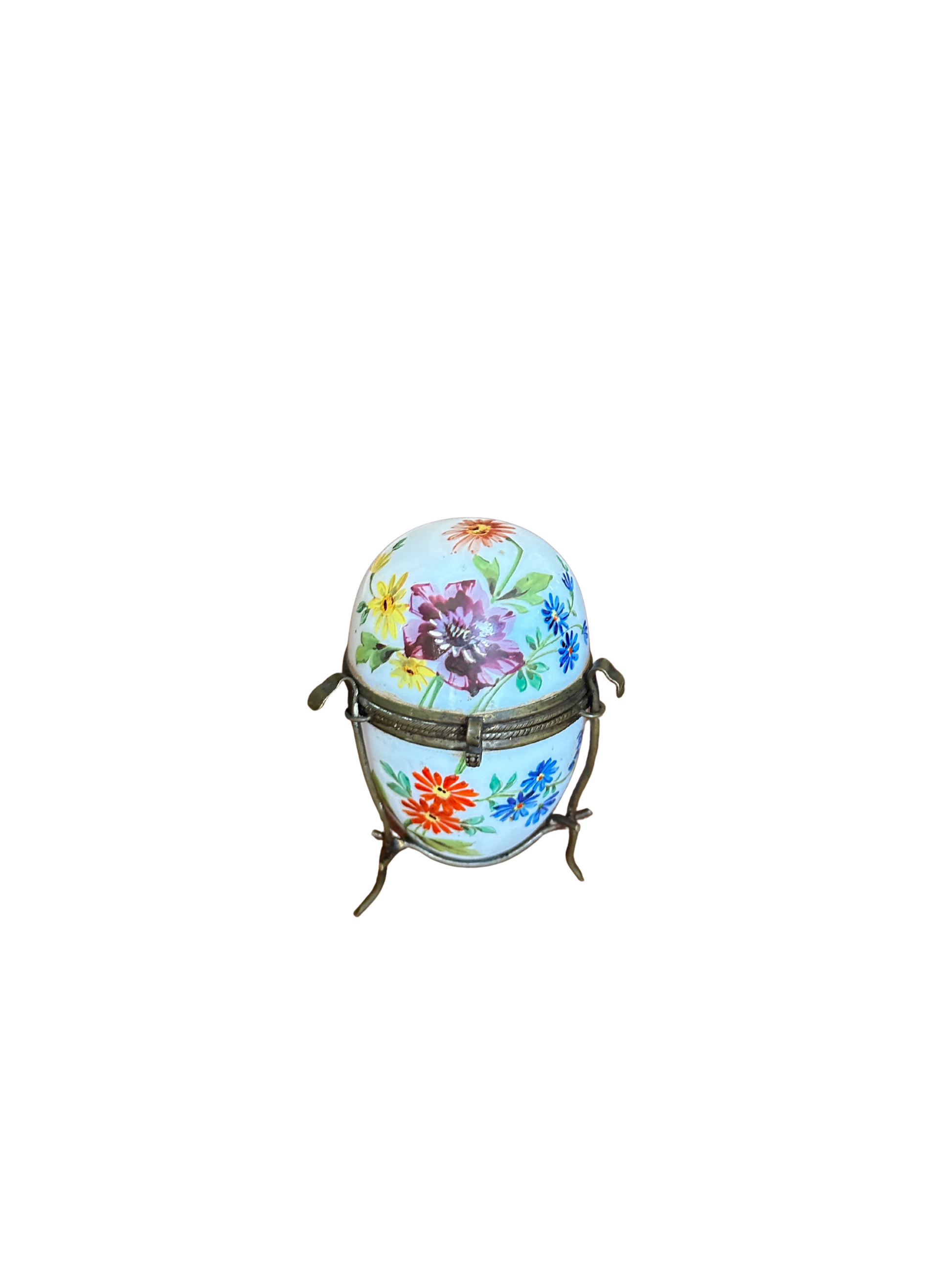 Victorian Enameled Opal Glass Egg Trinket Jewelry Box 4"h