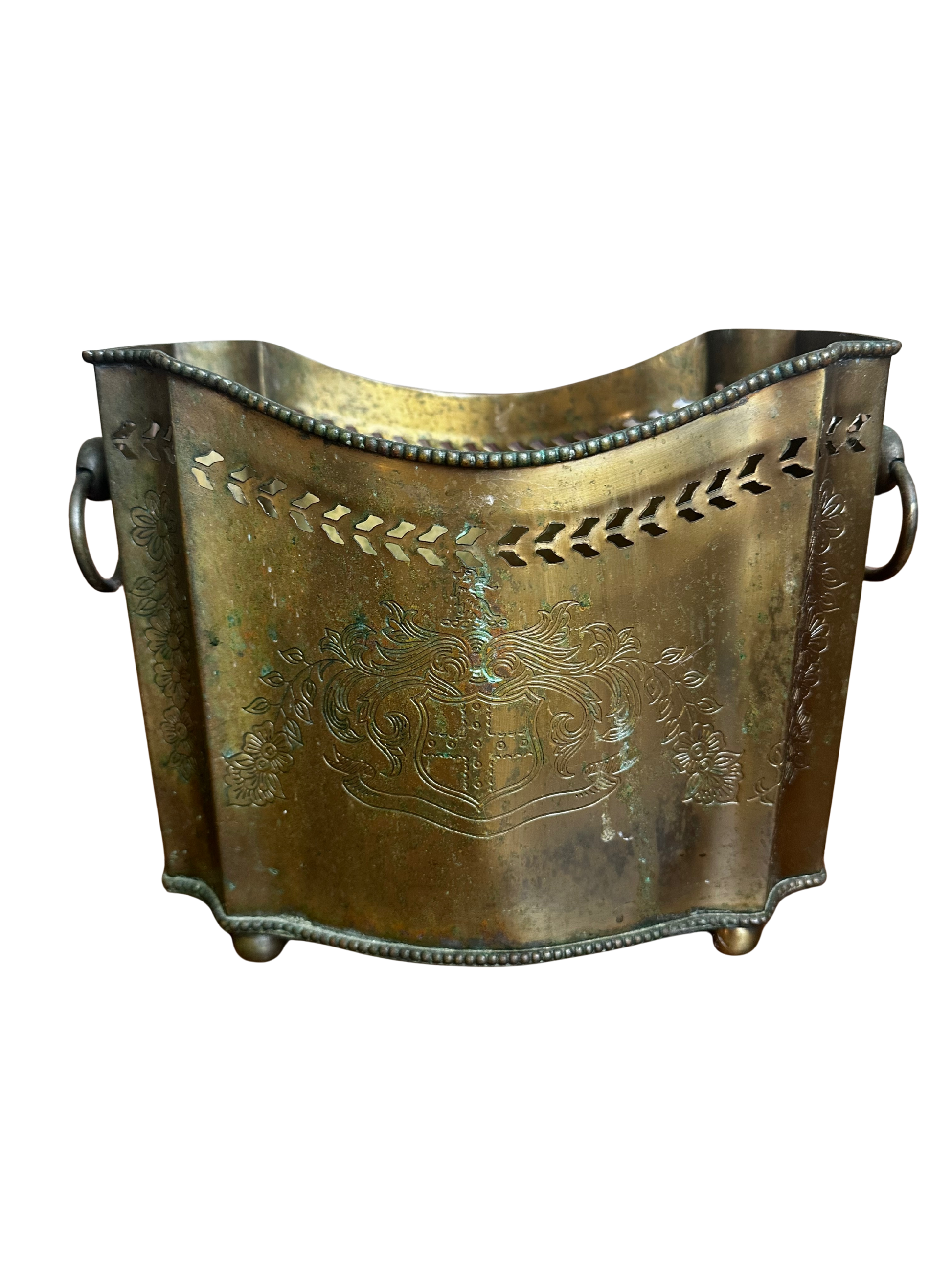 Mid-to-late 19th C Victorian Brass Cachepot with Heraldic Motif
