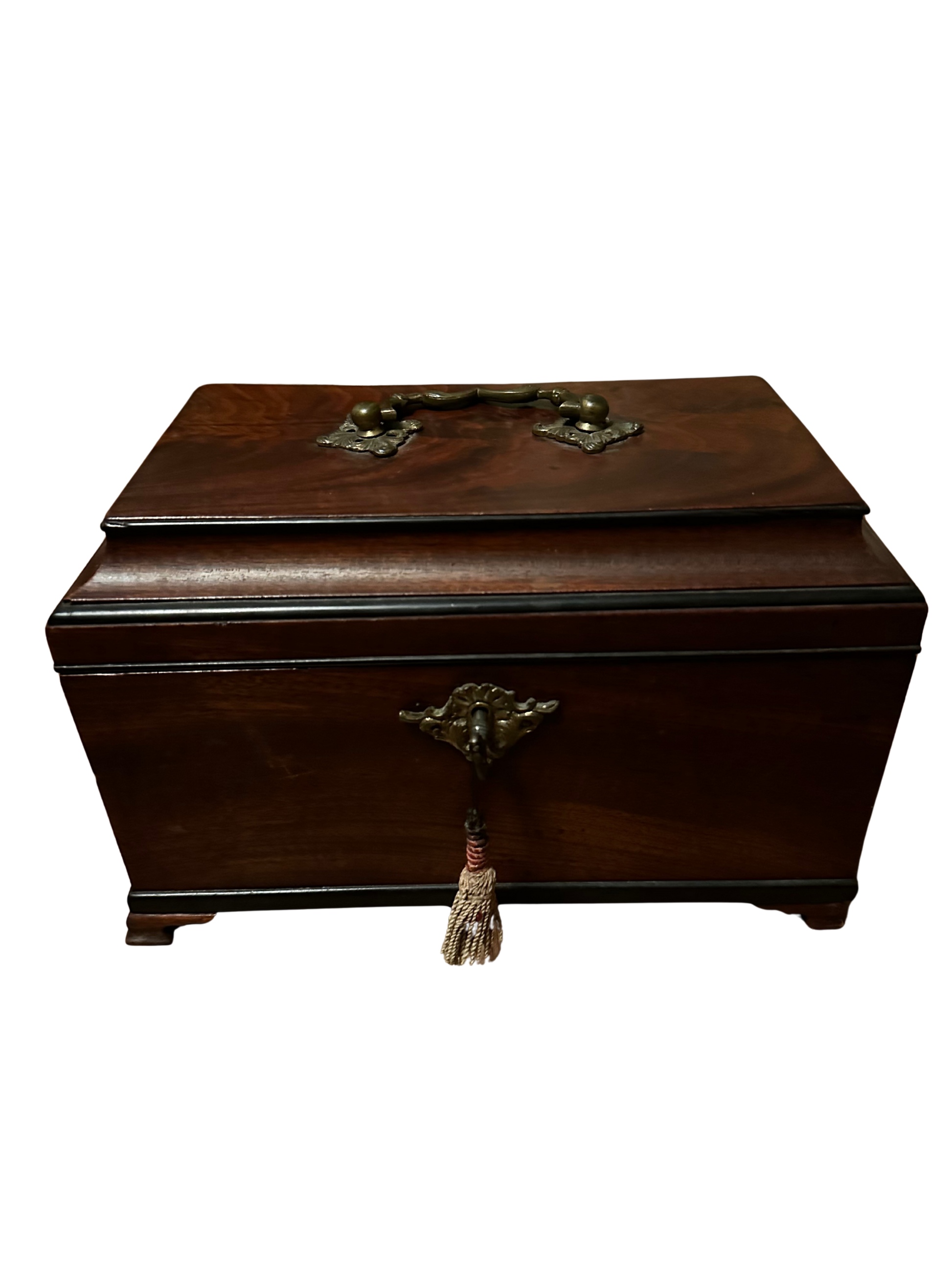 Mid-to-Late 19th C Victorian Mahoghany Jewelry Box/Desk Box with Tassel Key