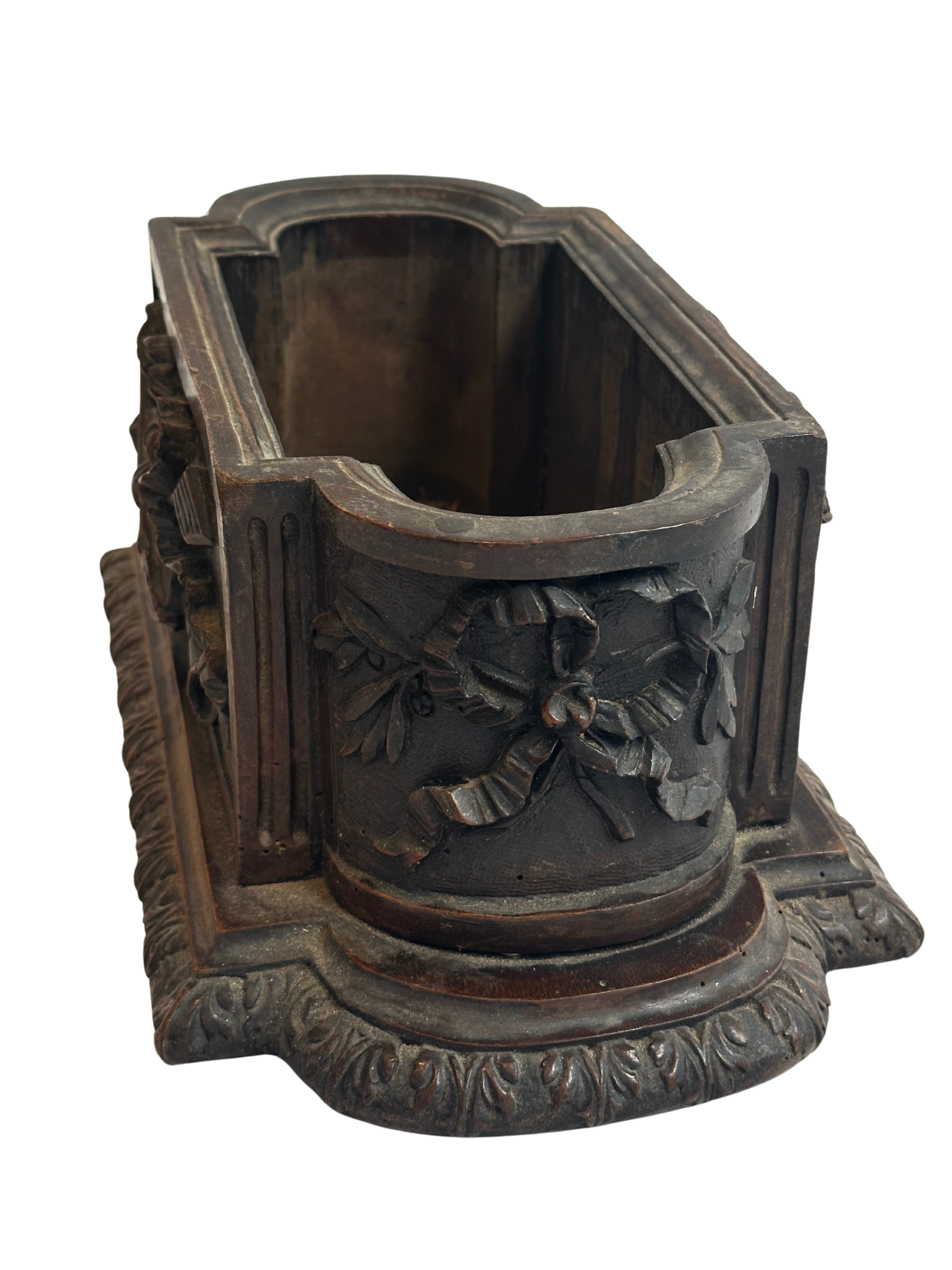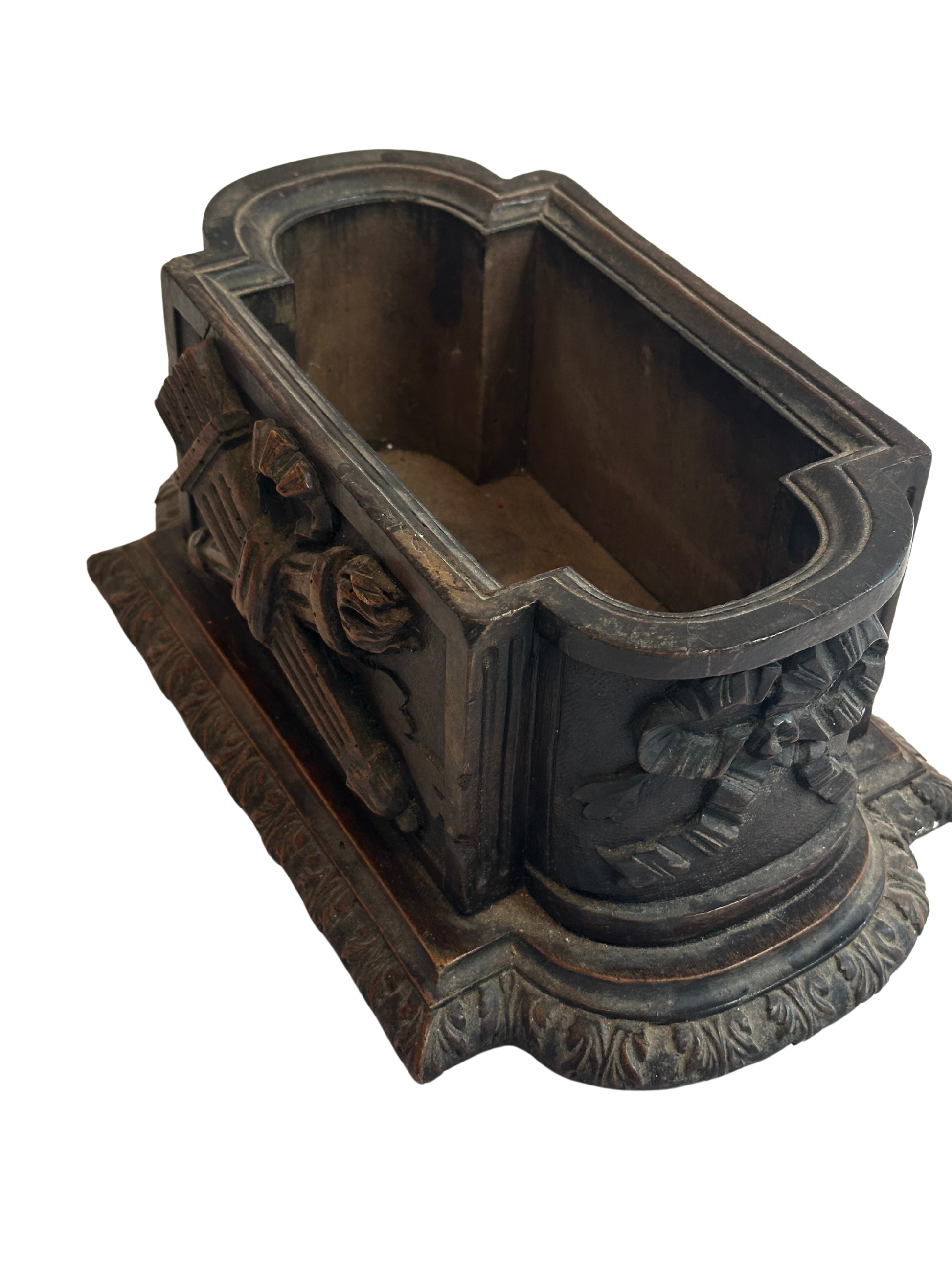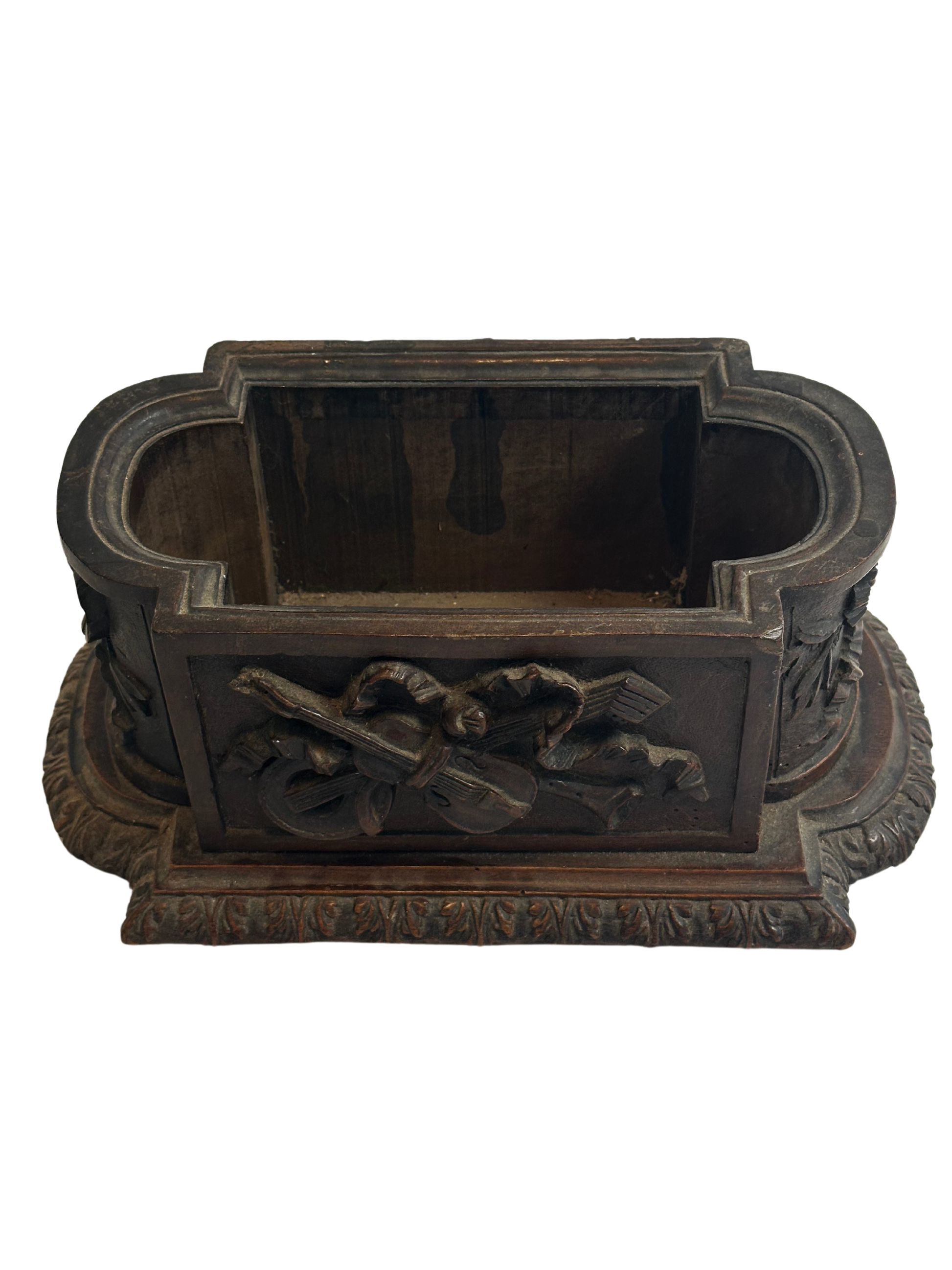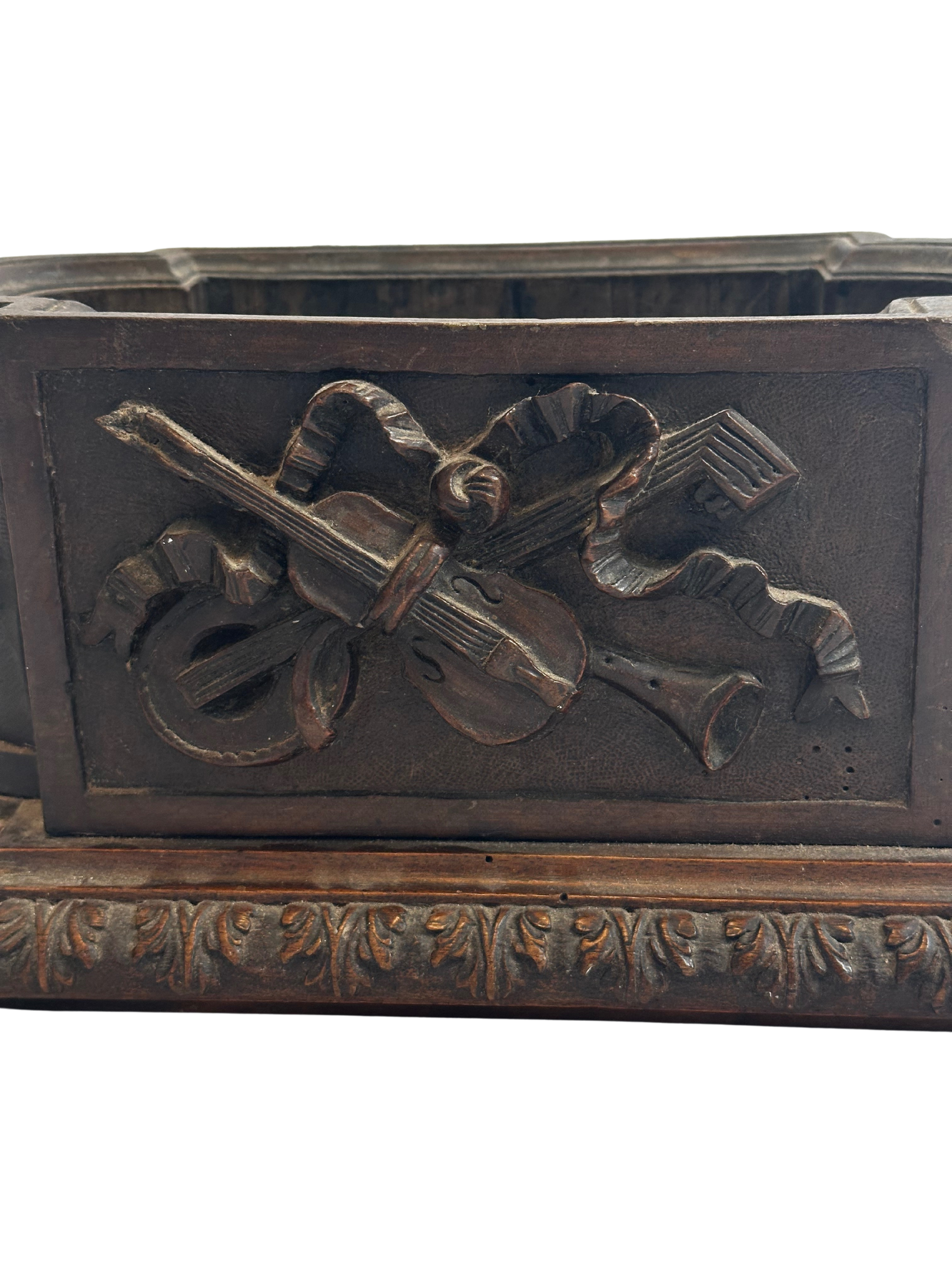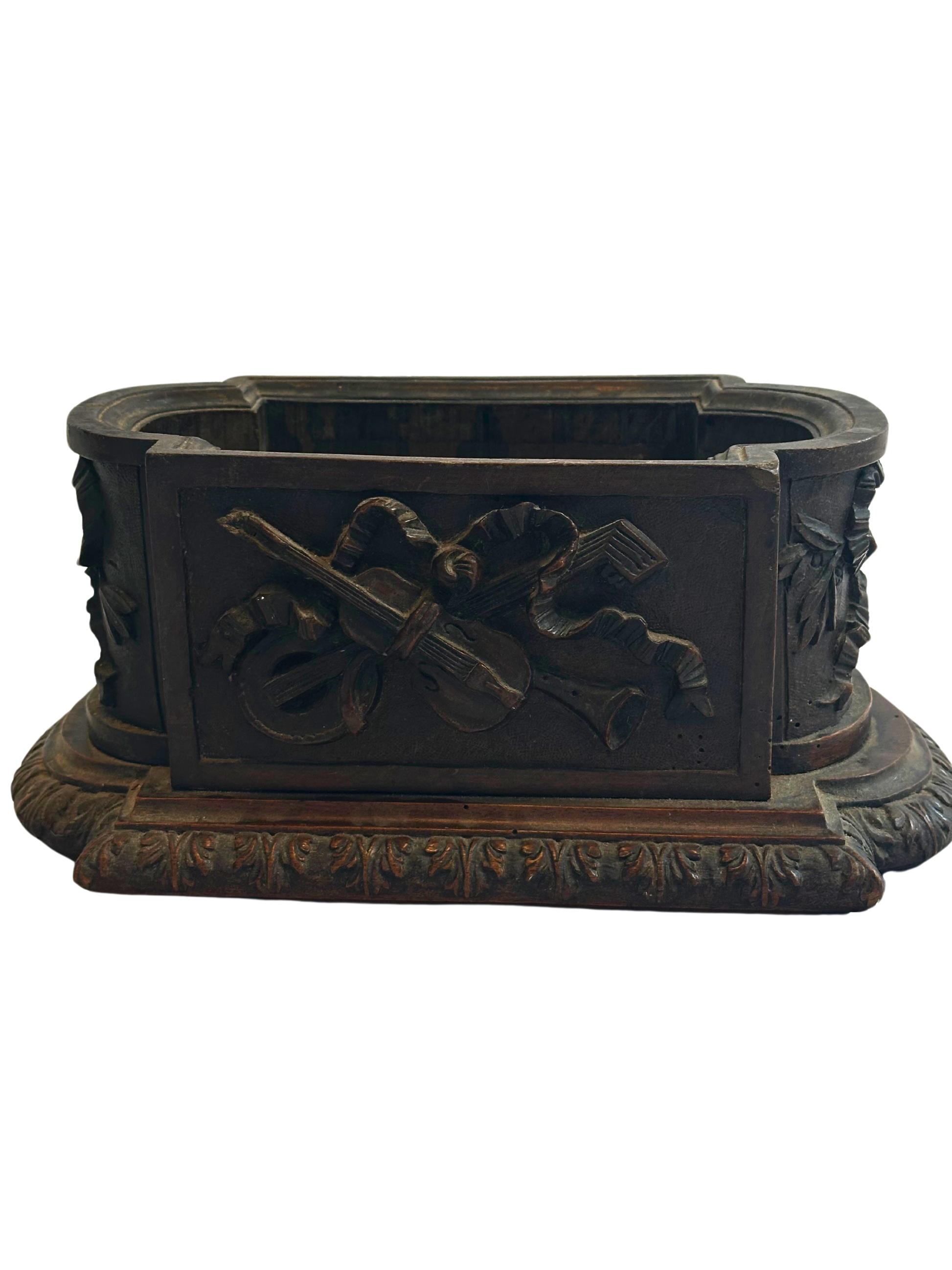 19th Century French Black Forest Style Carved Jardiniere with Musical Motif