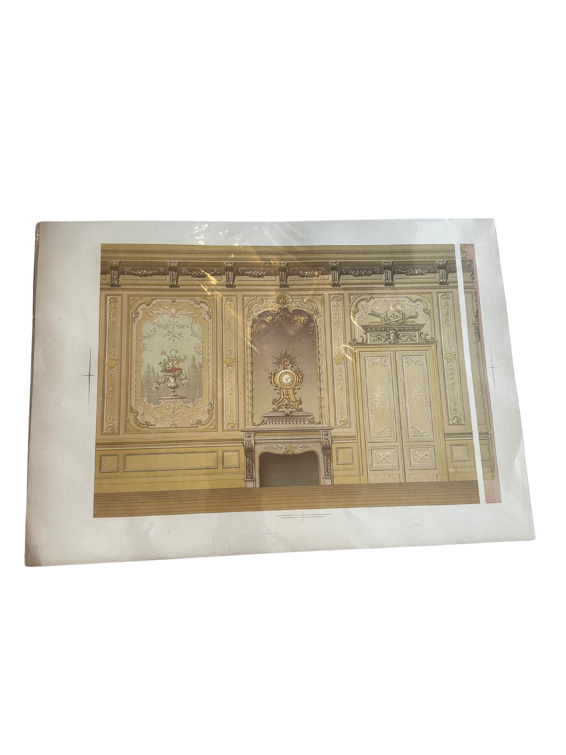 19th c French chromolithograph of an interior "Boiserie" (wall paneling) deisng