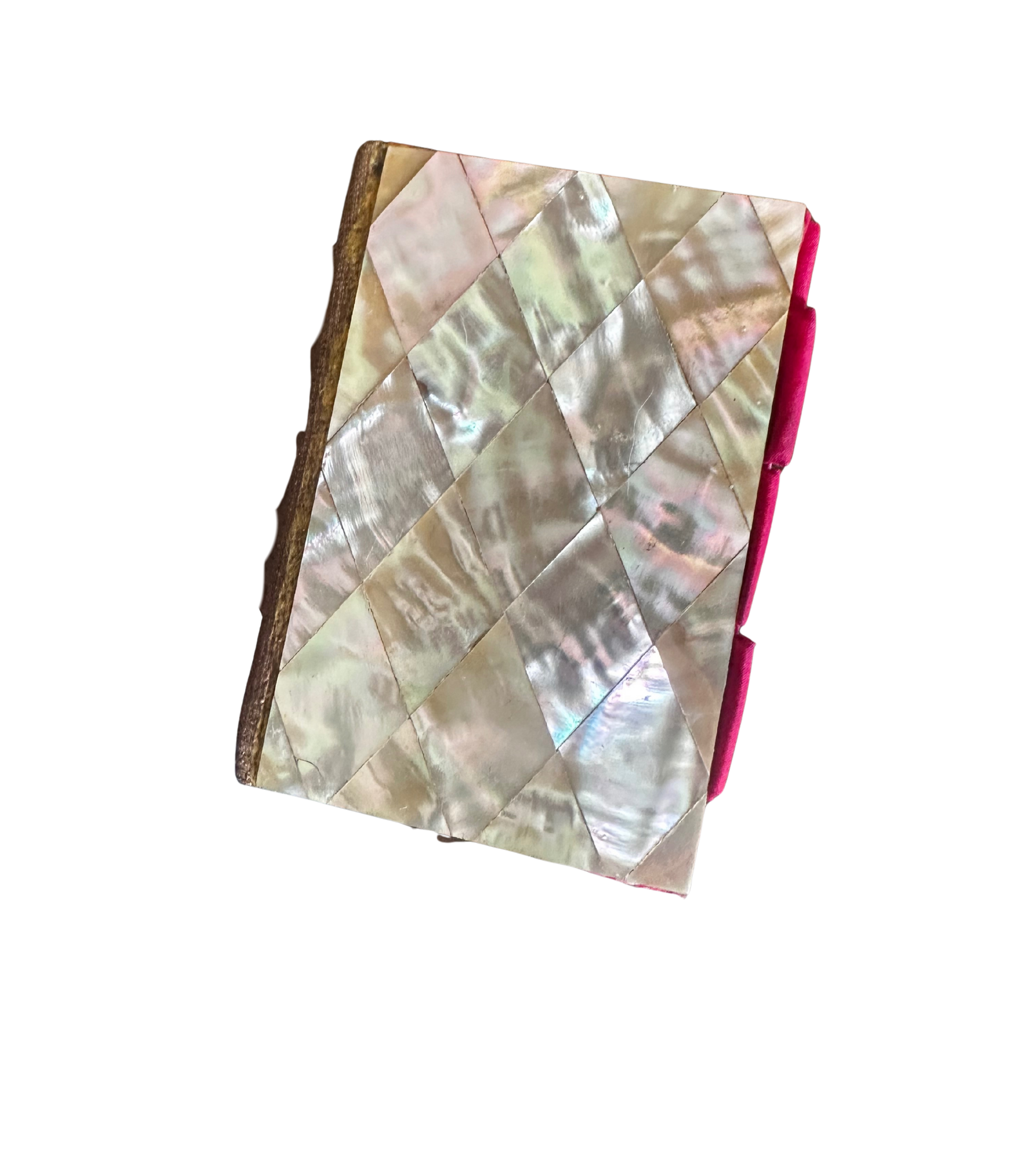 19th C French MOP coin or card case, lined in bright magenta silk - a type of necessaire or porte-cartes that was popular in Paris between 1840-1880