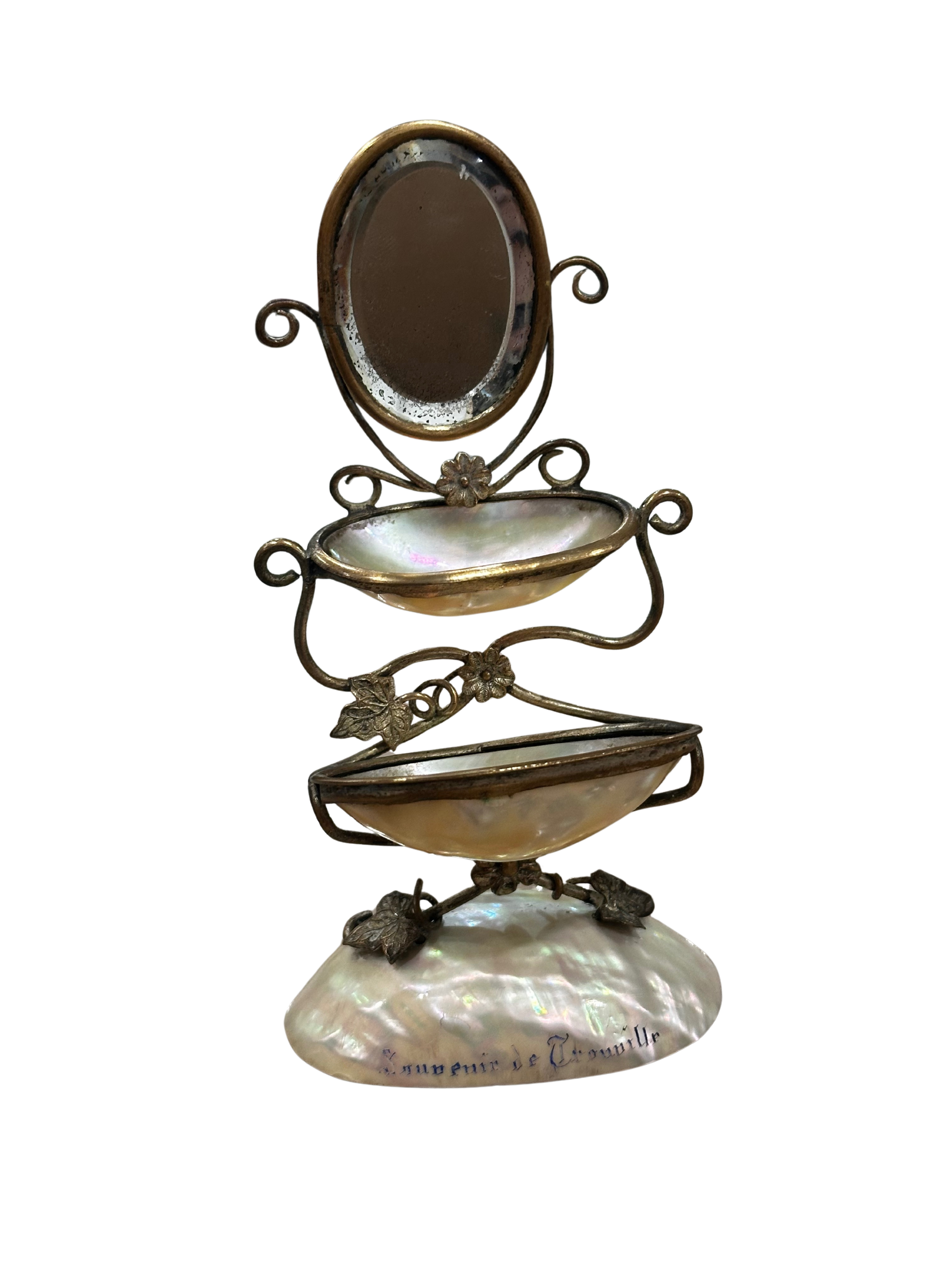 19th C French Mother of Pearl Vanity Stand (Souvenir de Trouville - c 1870-1890)