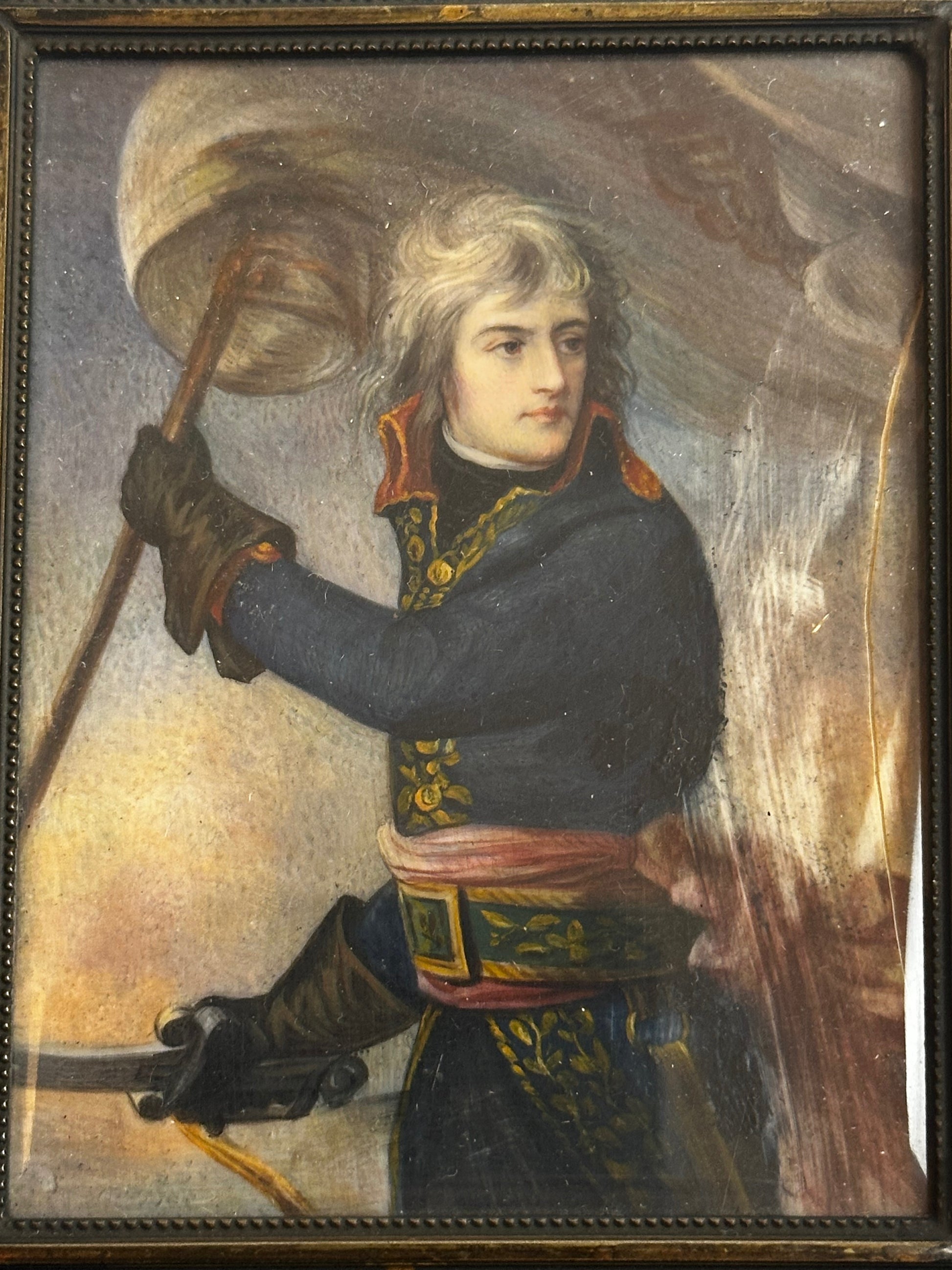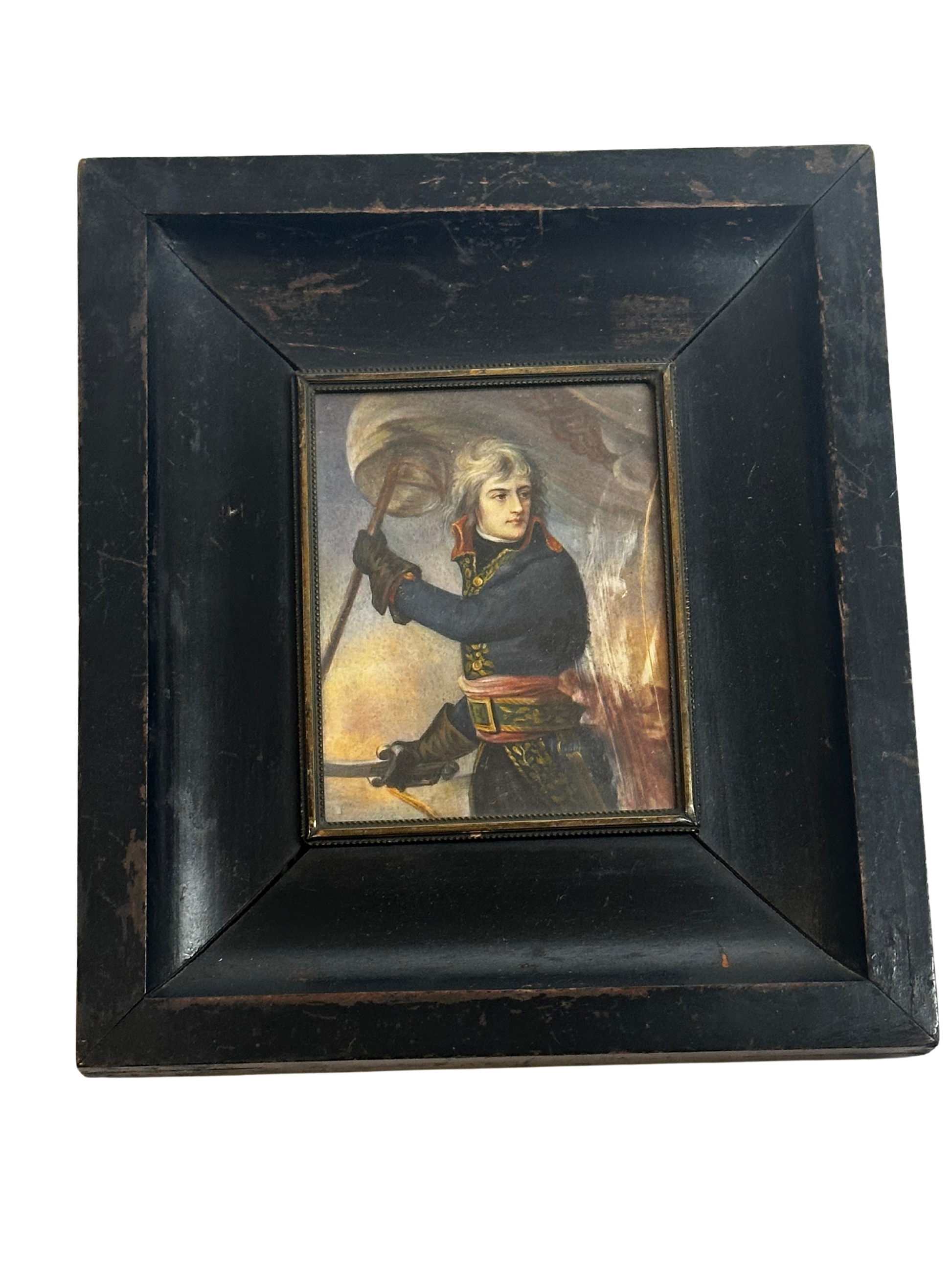 19th C Miniature Portrait of Napoleon Bonaparte at the Bridge of Arcole (After Antoine-Jean Gros)