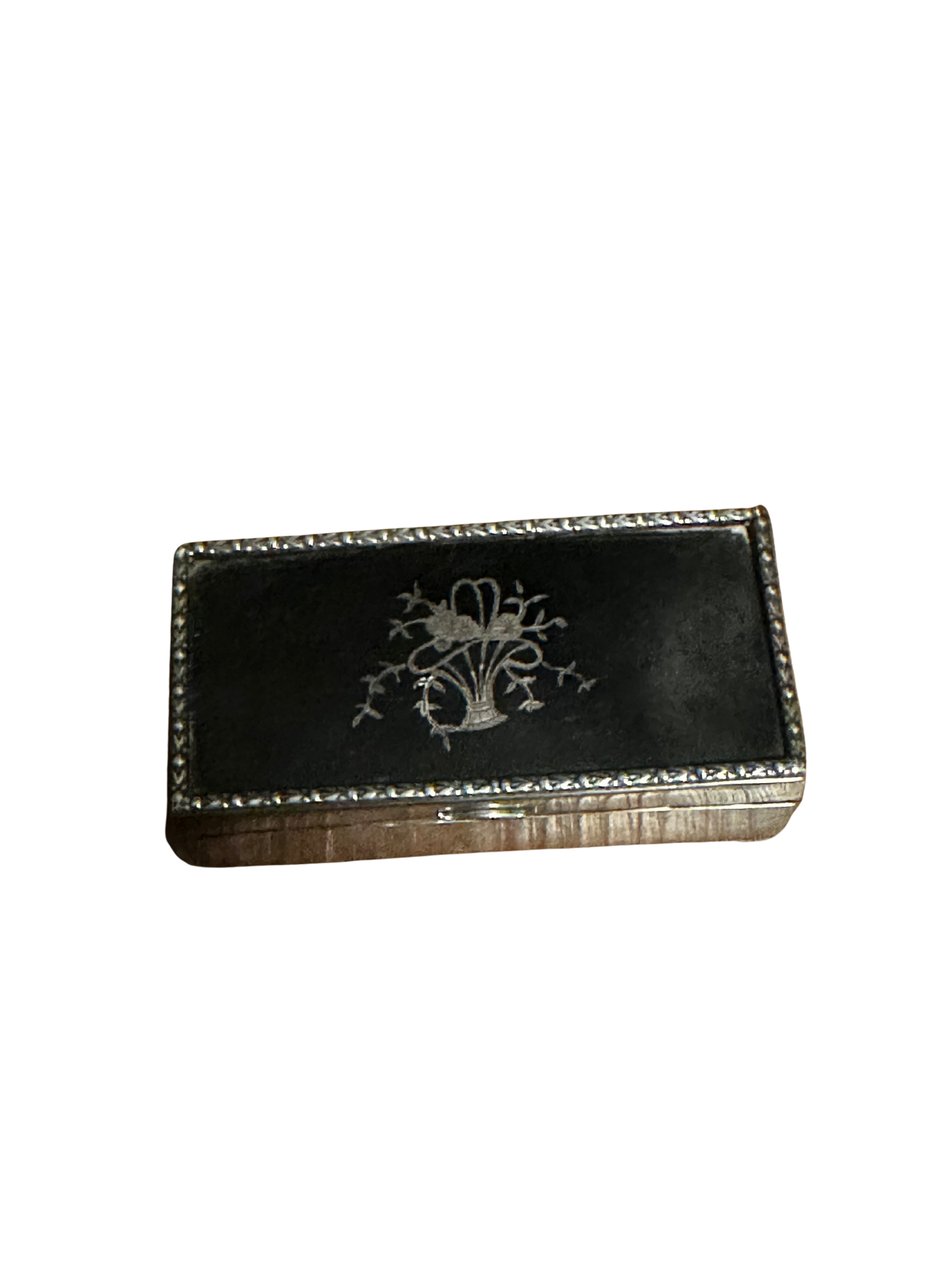 19th C Sterling Silver and Tortoise Shell Rectangular Box with Basket Pique Inlay
