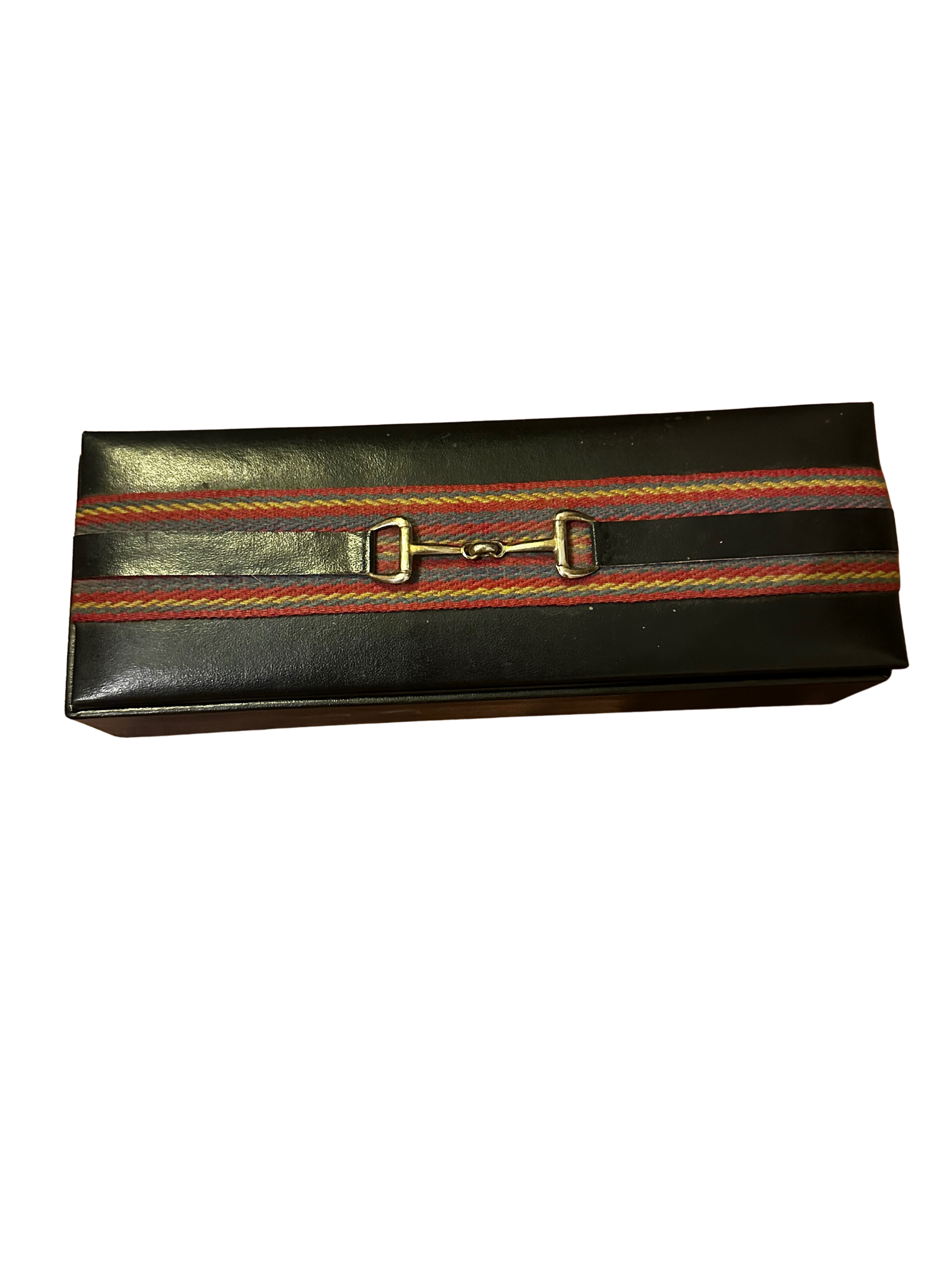 Black Leather Glove Box with Tartan Ribbon and Metal