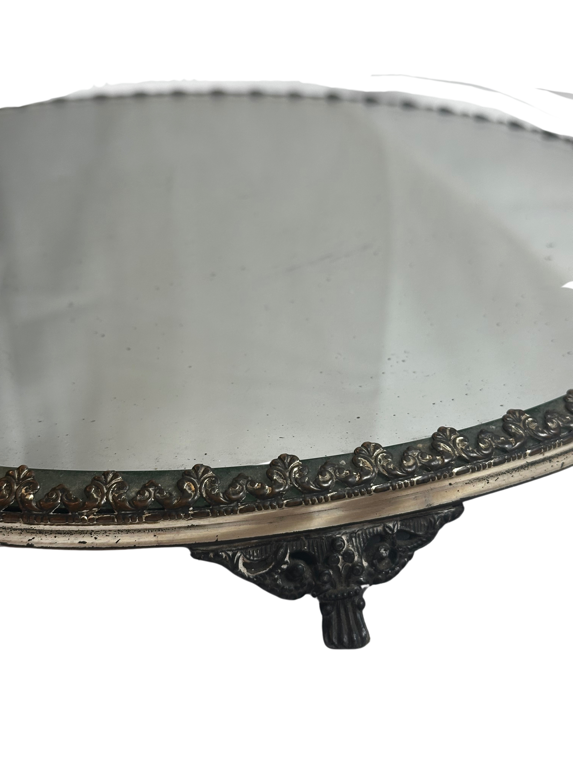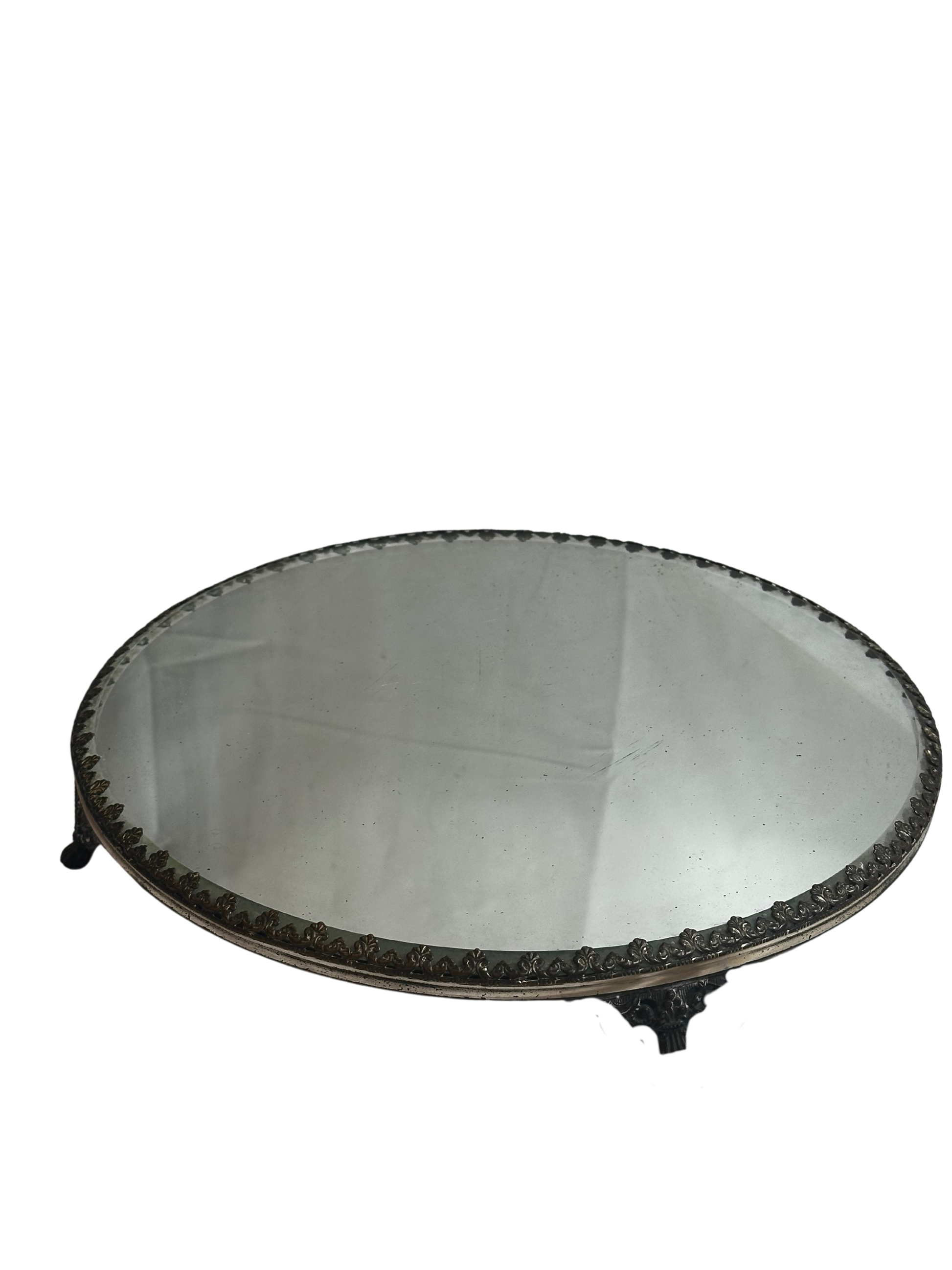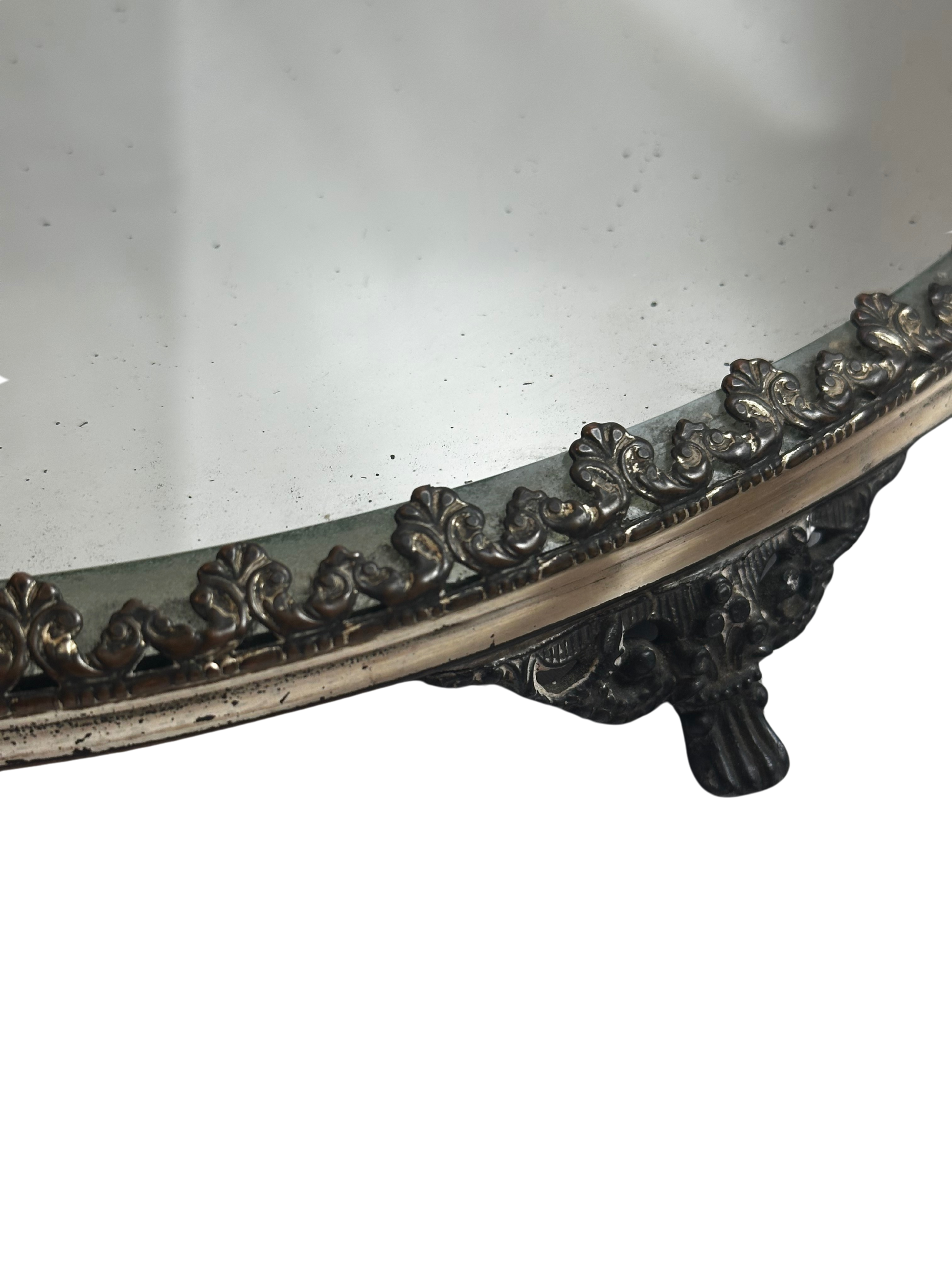 Antique French or American Mirrored Circular Vanity Mirror Tray/Plateau (Silver Tone).