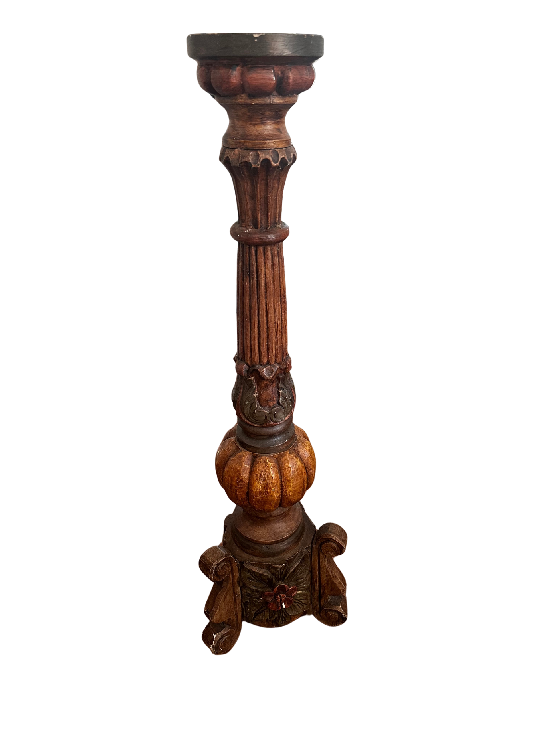 Tall Hand Carved Wooden Candle Stand or Pedestal
