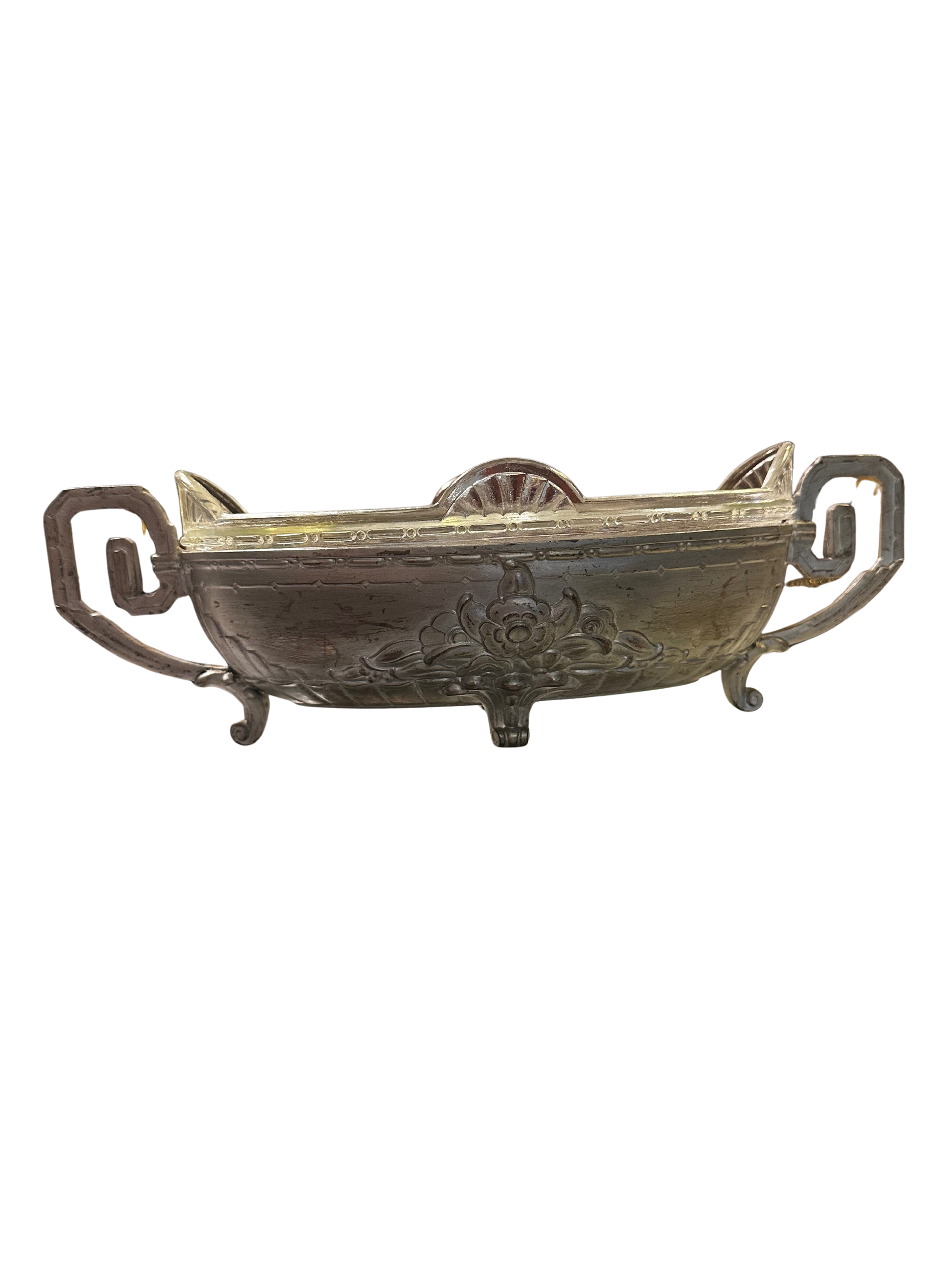 Vintage French Ornate Silver Tone Metal and Glass Jardiniere