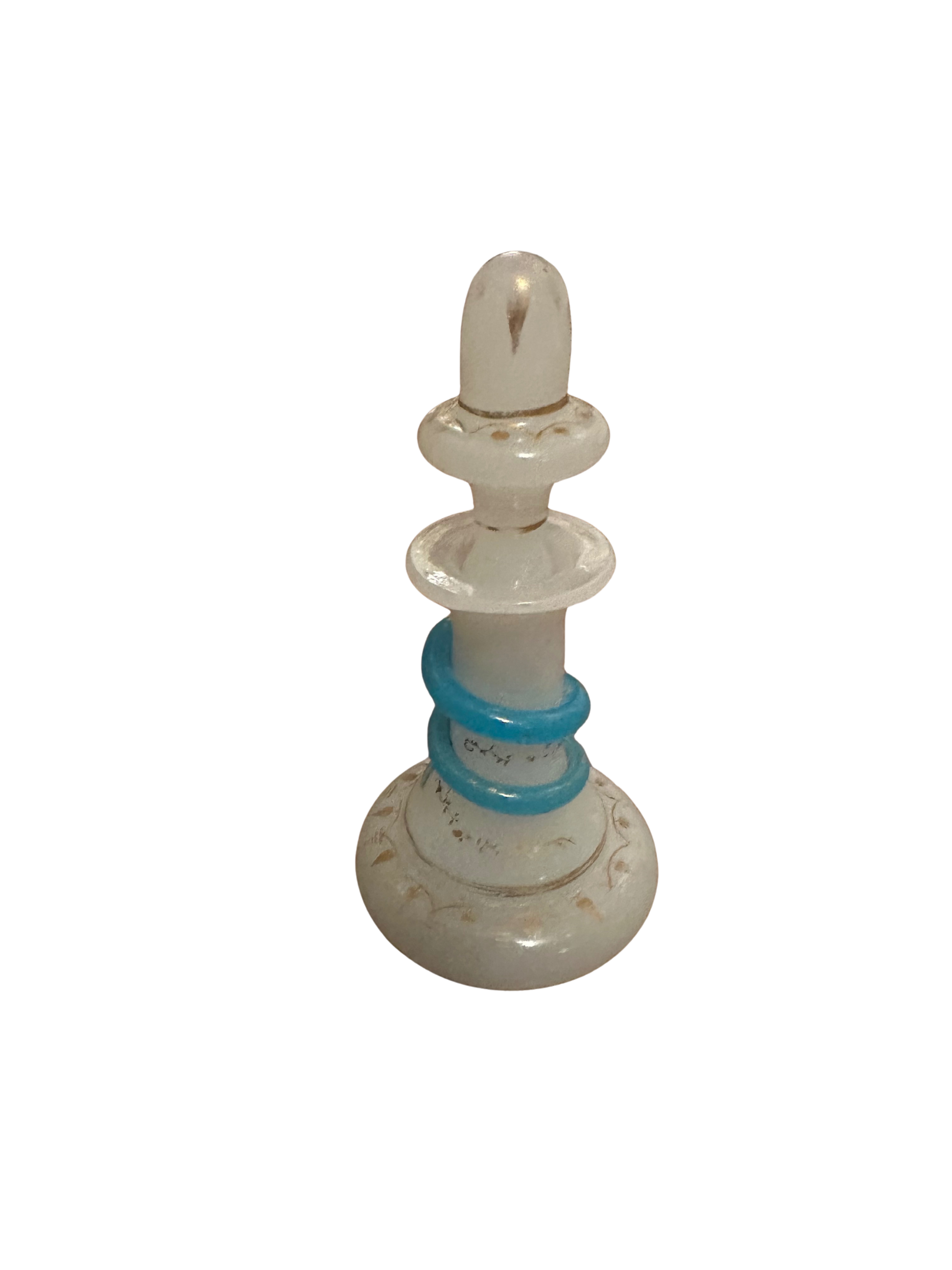 Baccarat Perfume Bottle - White Opaline with Blue Applied Decor to Neck and Gold Decoration