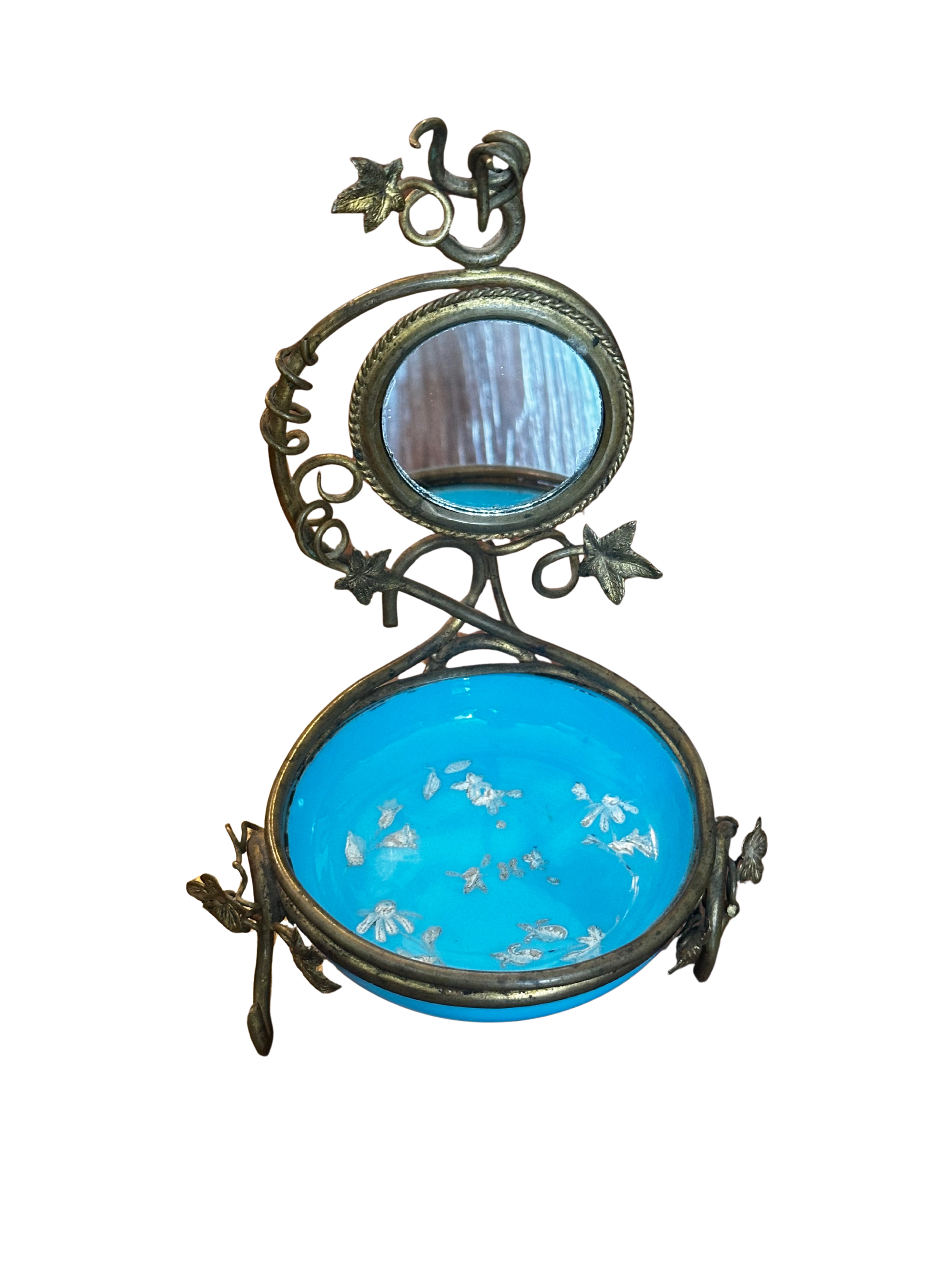 Blue Opaline 1890's Victorian Vanity Tray/Whimsy with Mirror