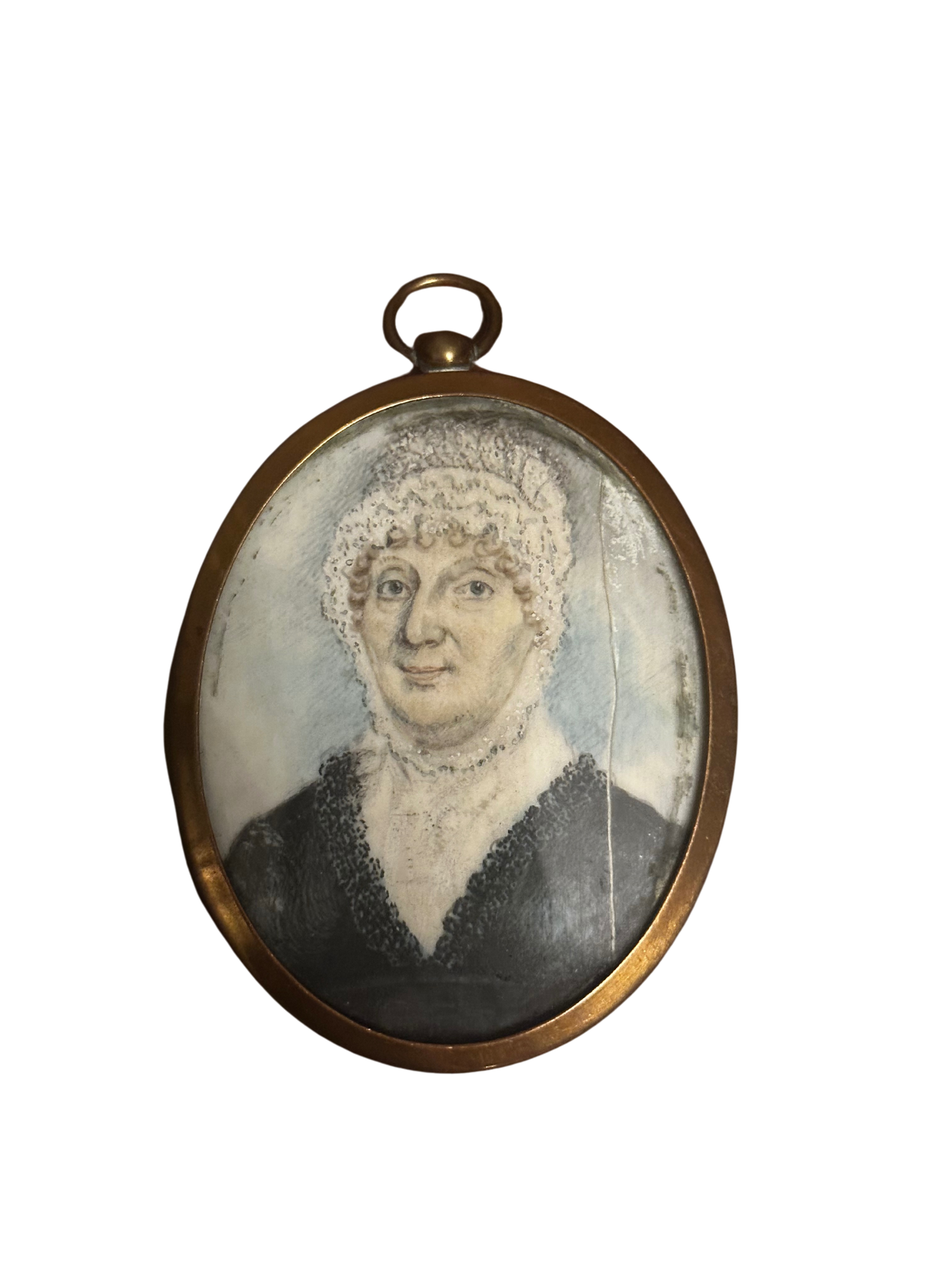Early 19th C Watercolor on Ivory Portrait of Woman in Bonnet