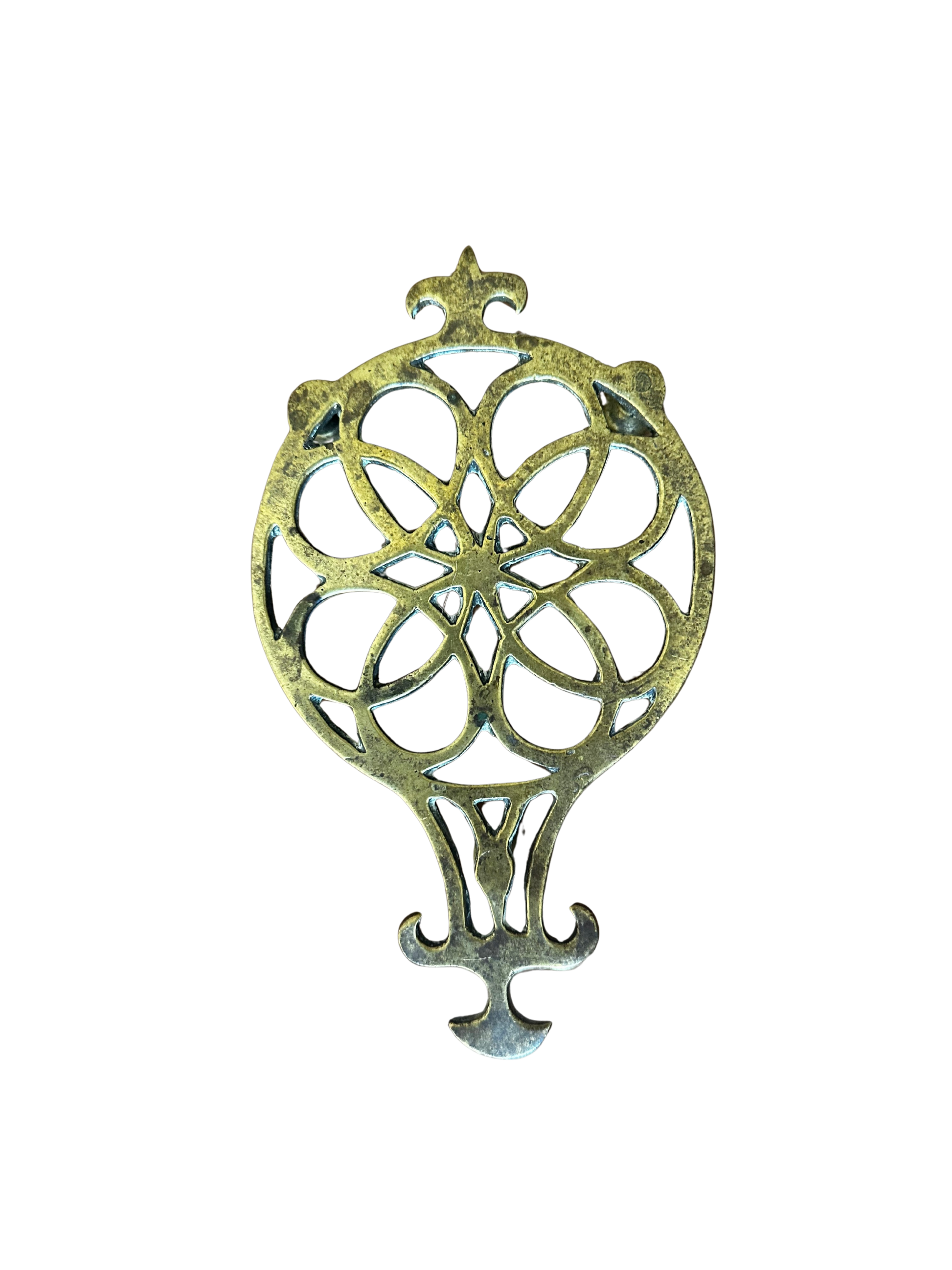 Curvilinear shape at one end suggest it may have originally been used as a sad iron stand or for kitchen use on a wood burning stove