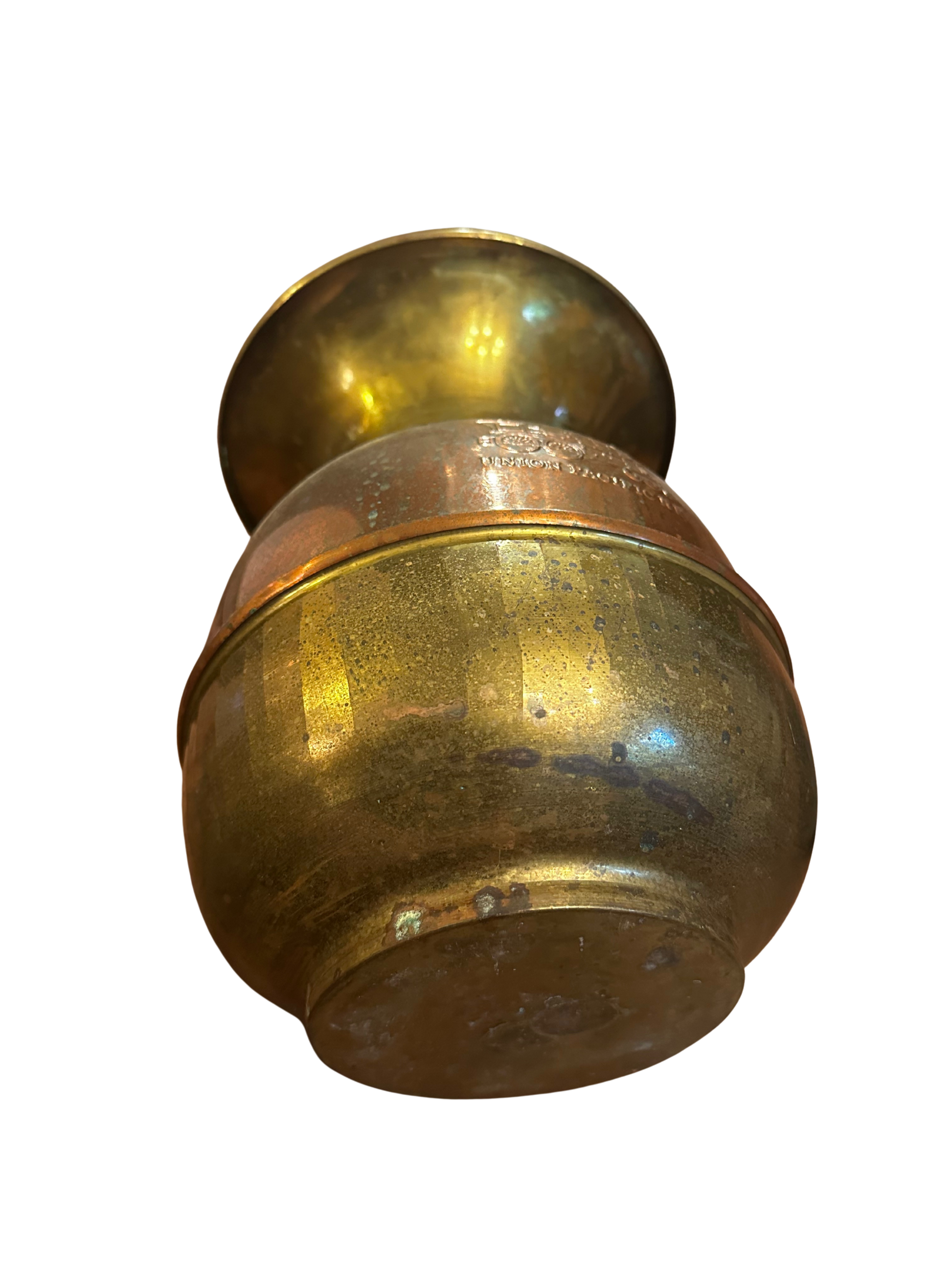 Also known as a cuspidor, this brass and copper alloy spittoon between 1920s-50s
