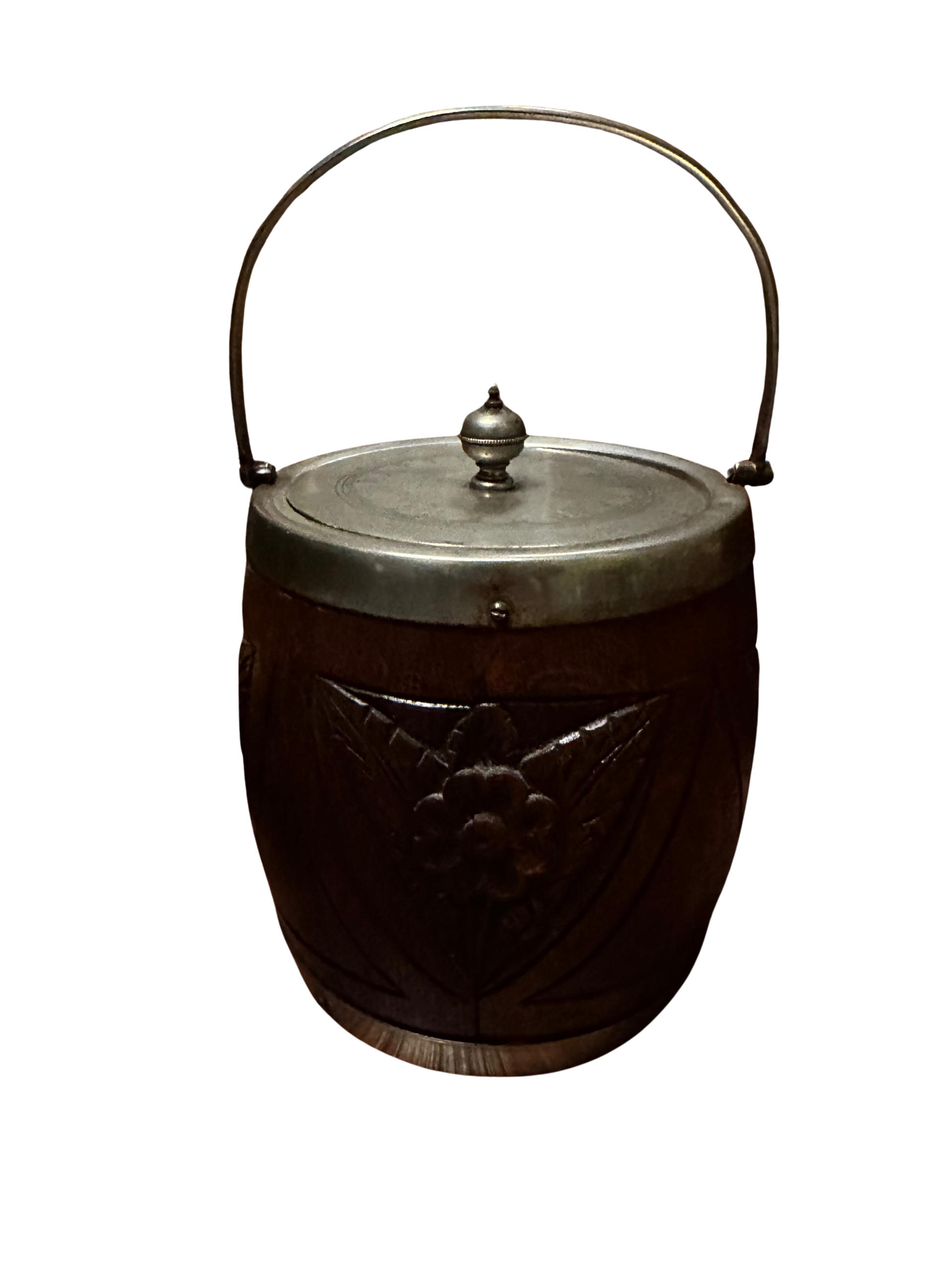 Late Victorian or Edwardian Carved Oak Biscuit Barrel (1890-1910)