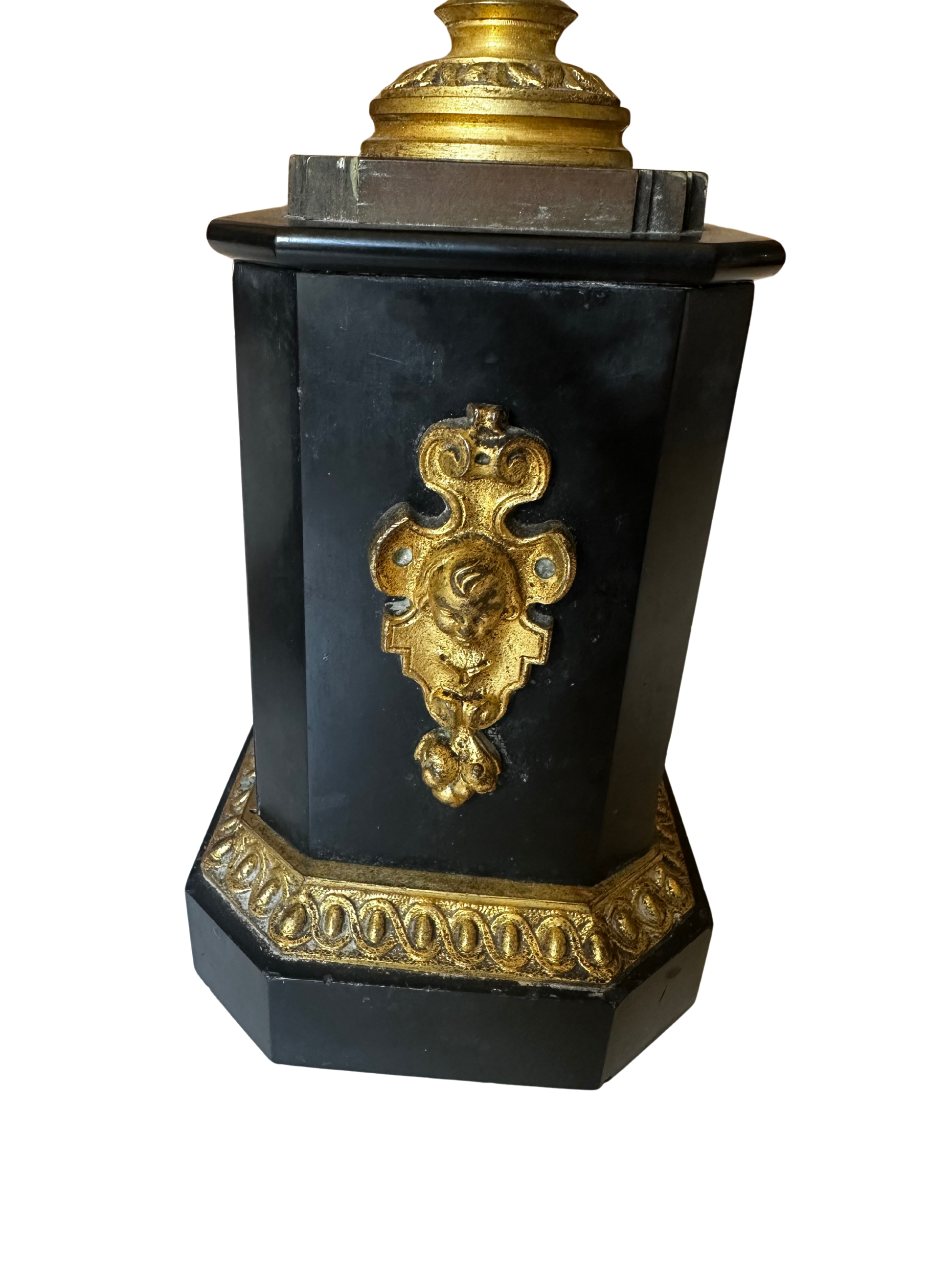 Late 19th C French Gilt Bronze and Black Stone Garniture Vases