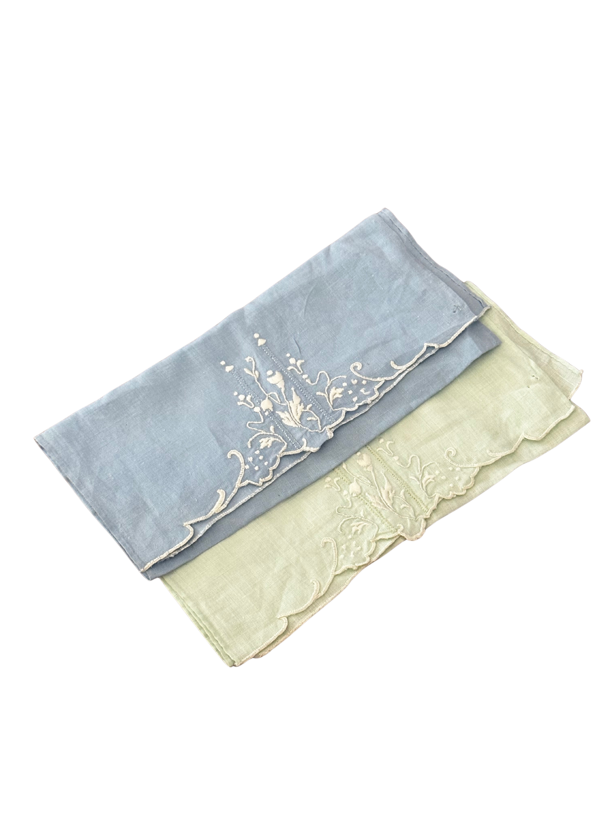 Pair of Blue and Green White Floral Embroidered Cocktail Napkins