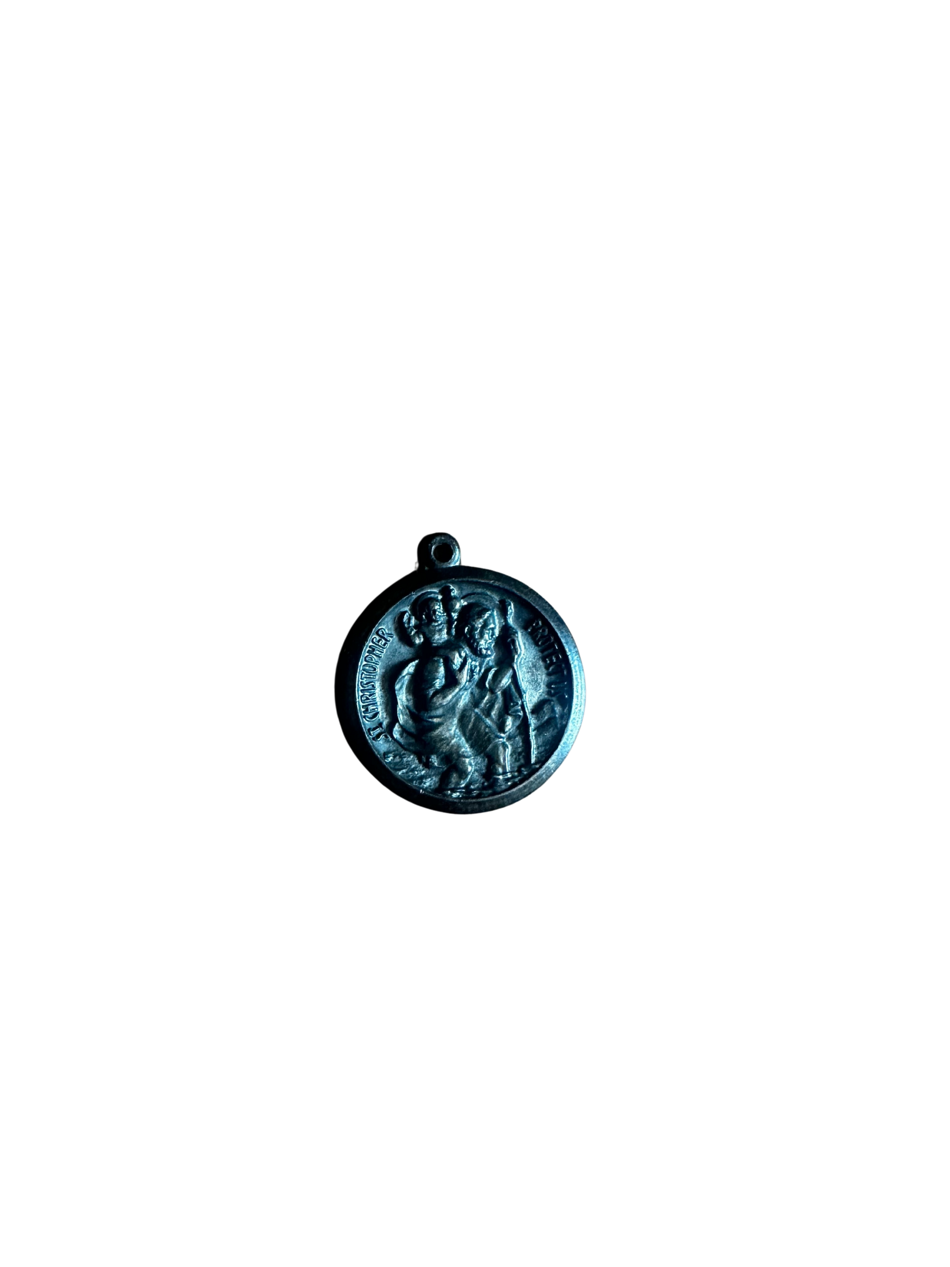St Christopher Pendant - Dark - I am a Catholic, In Case of Accident Please Call a Priest on Back