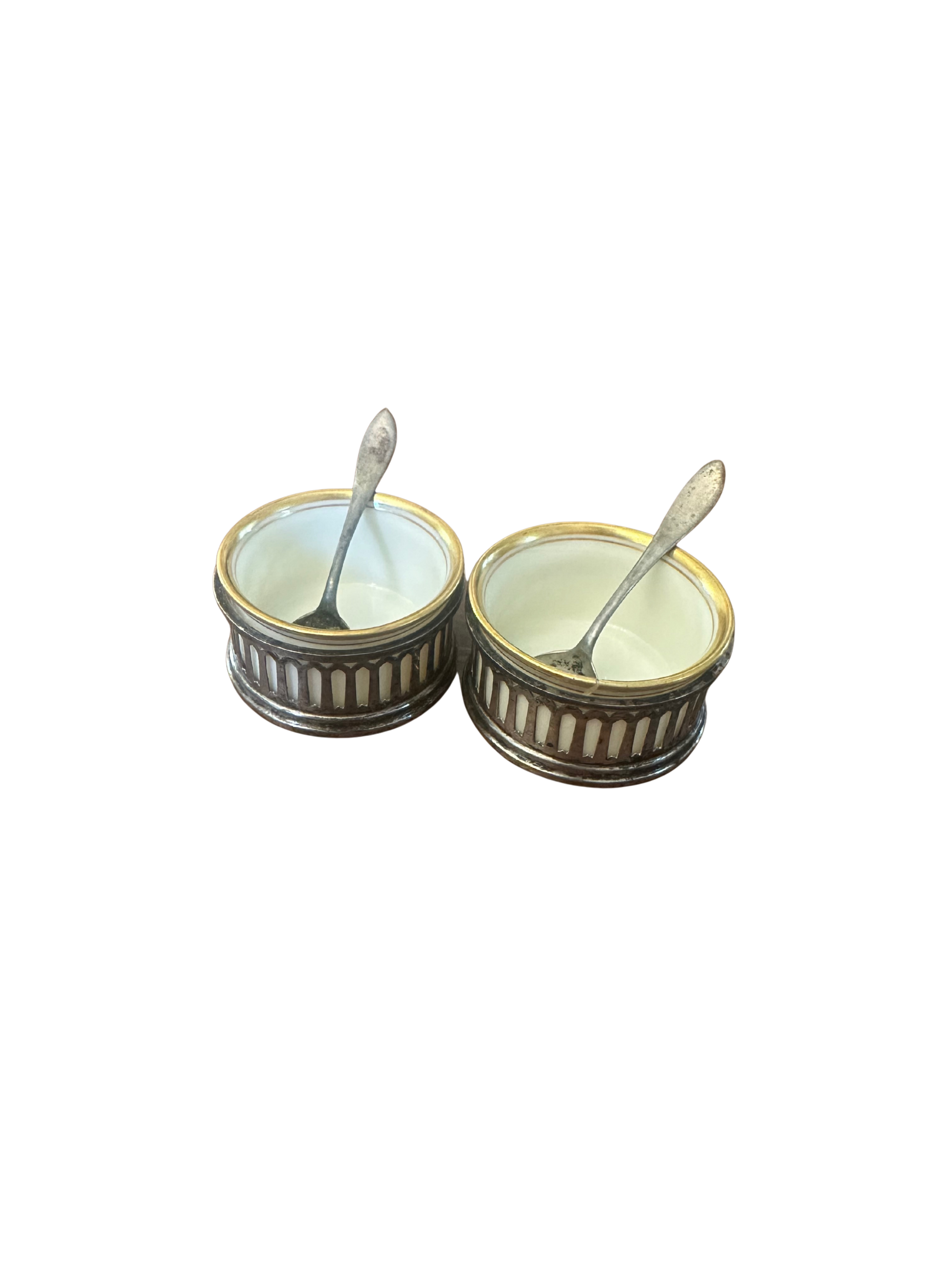 Two Sterling Silver Salt Cellars with Lenox Inserts and Spoons