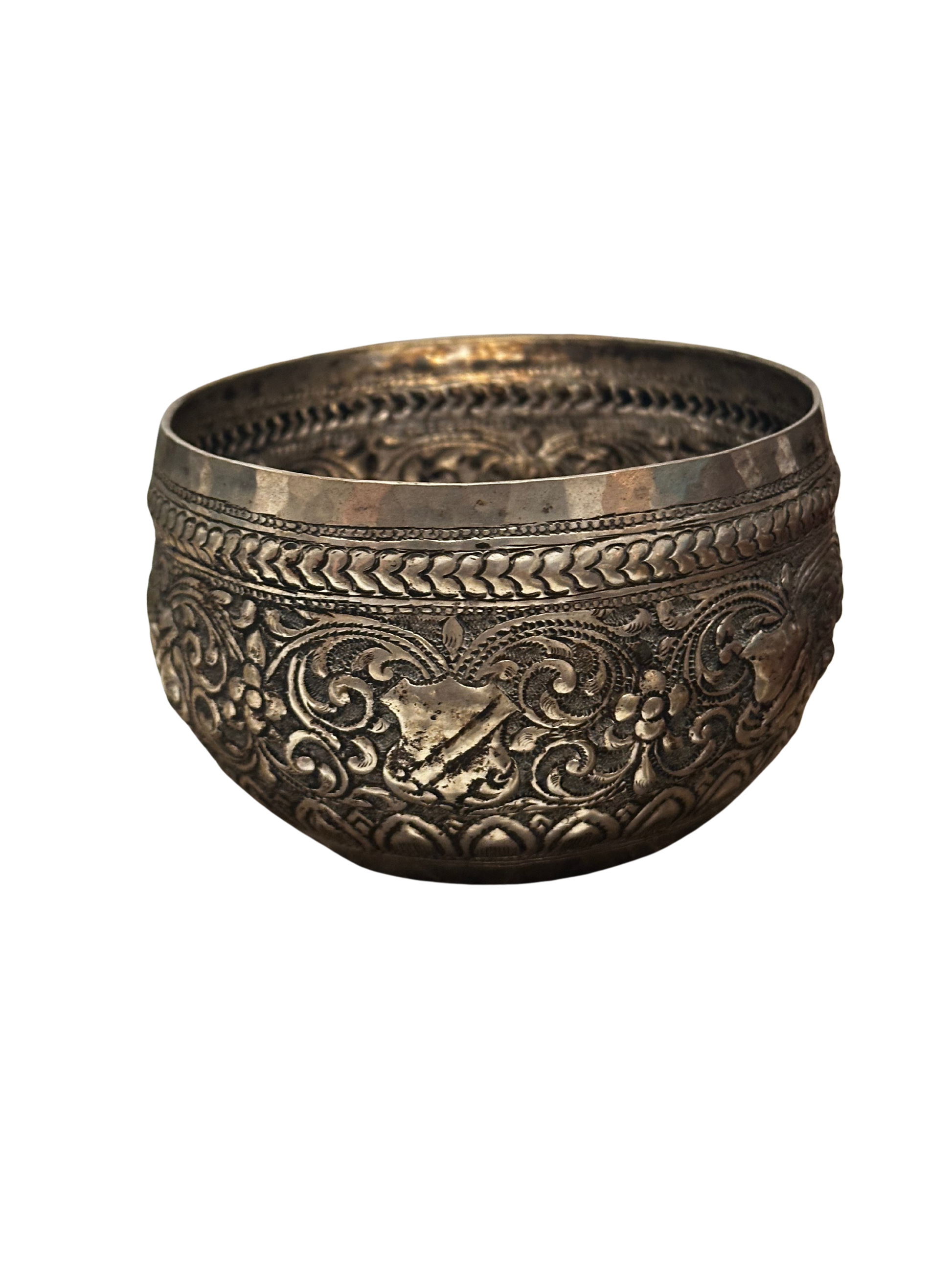 Vintage/Antique repousse silver (likely SE Asian - Burmese or Thai) bowl