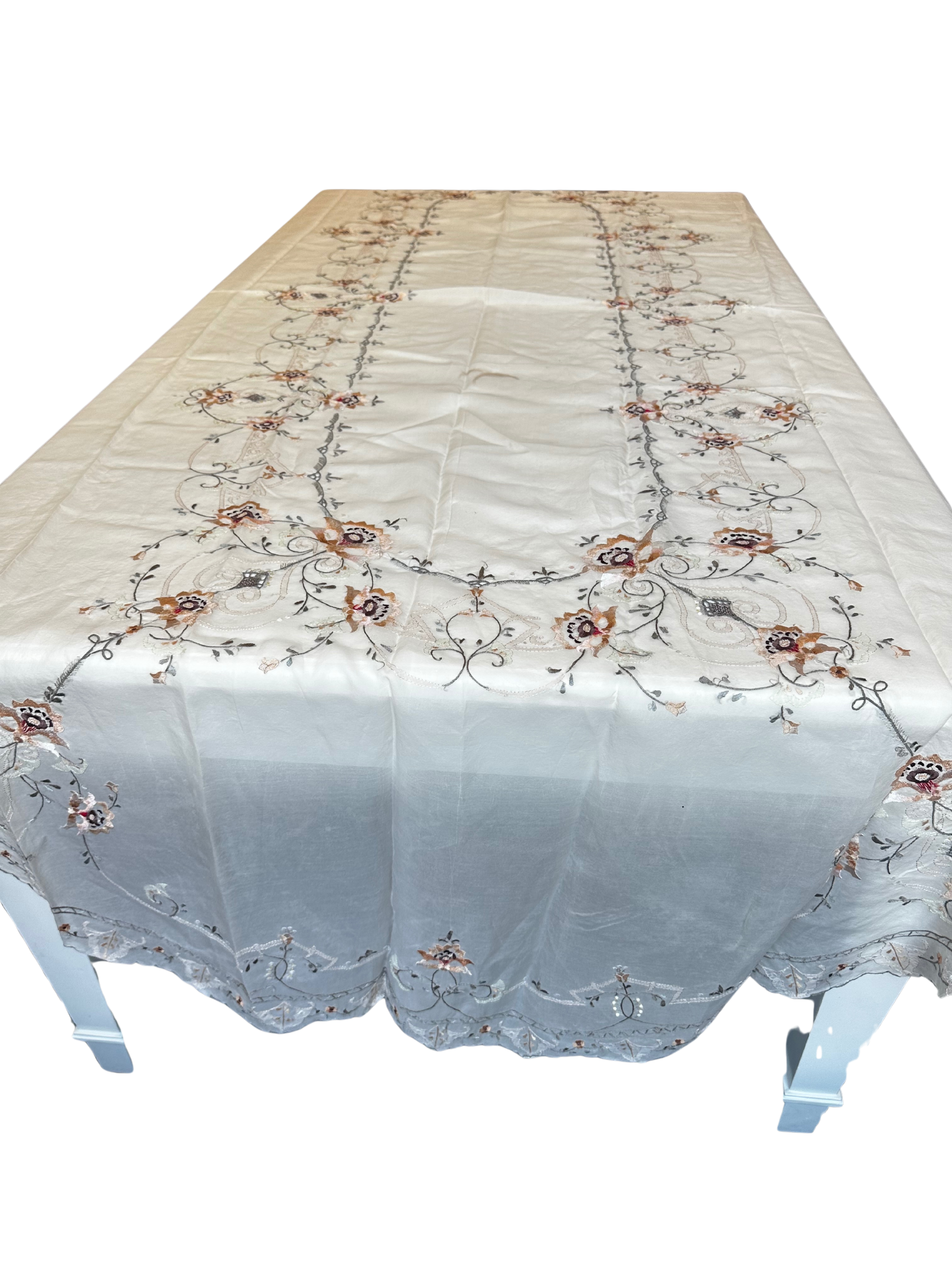 Vintage embroidered tablecloth 12 0" x 65"