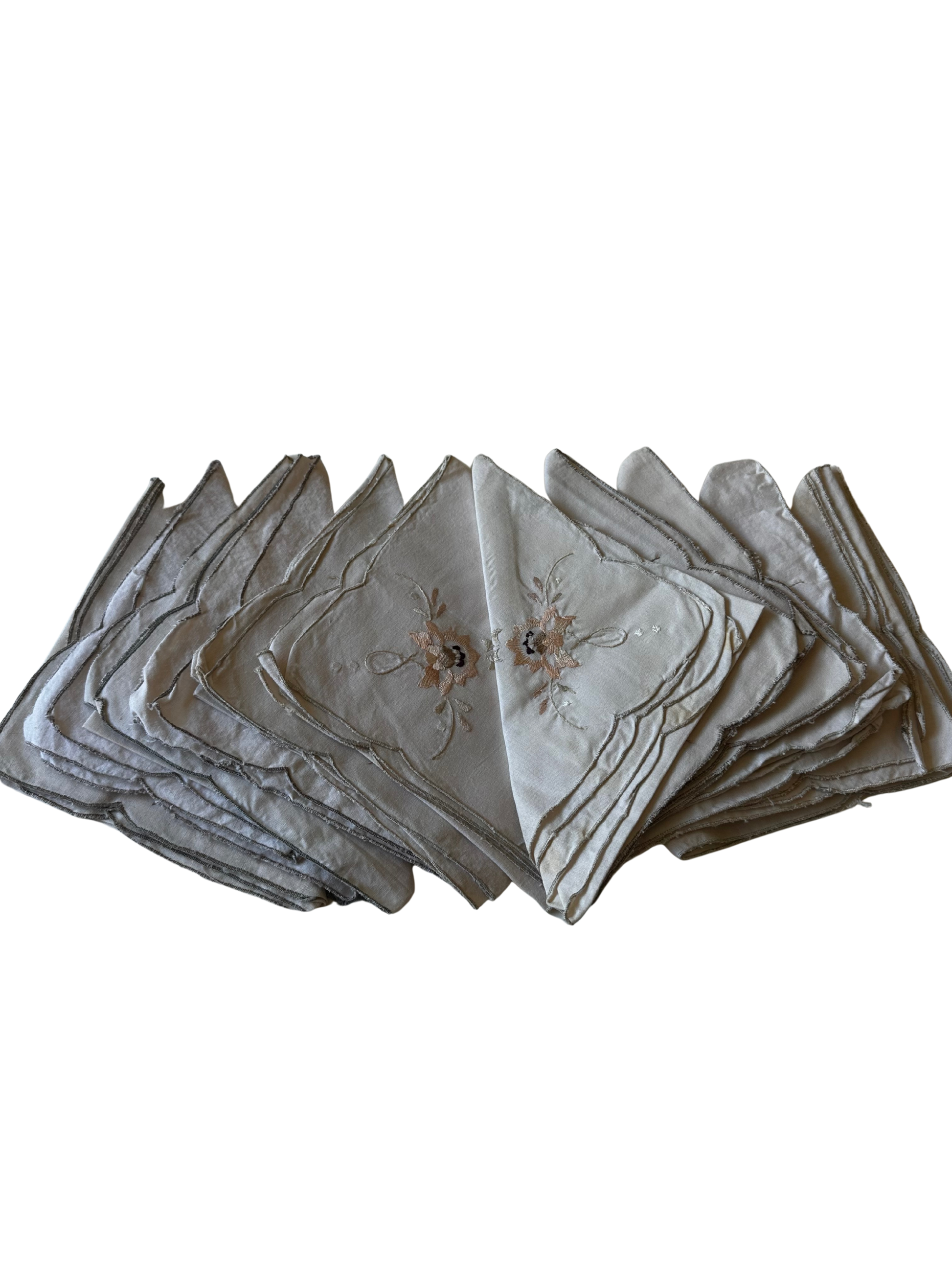 Vintage Mid-Century Set of 12 Floral Embroidered Napkins