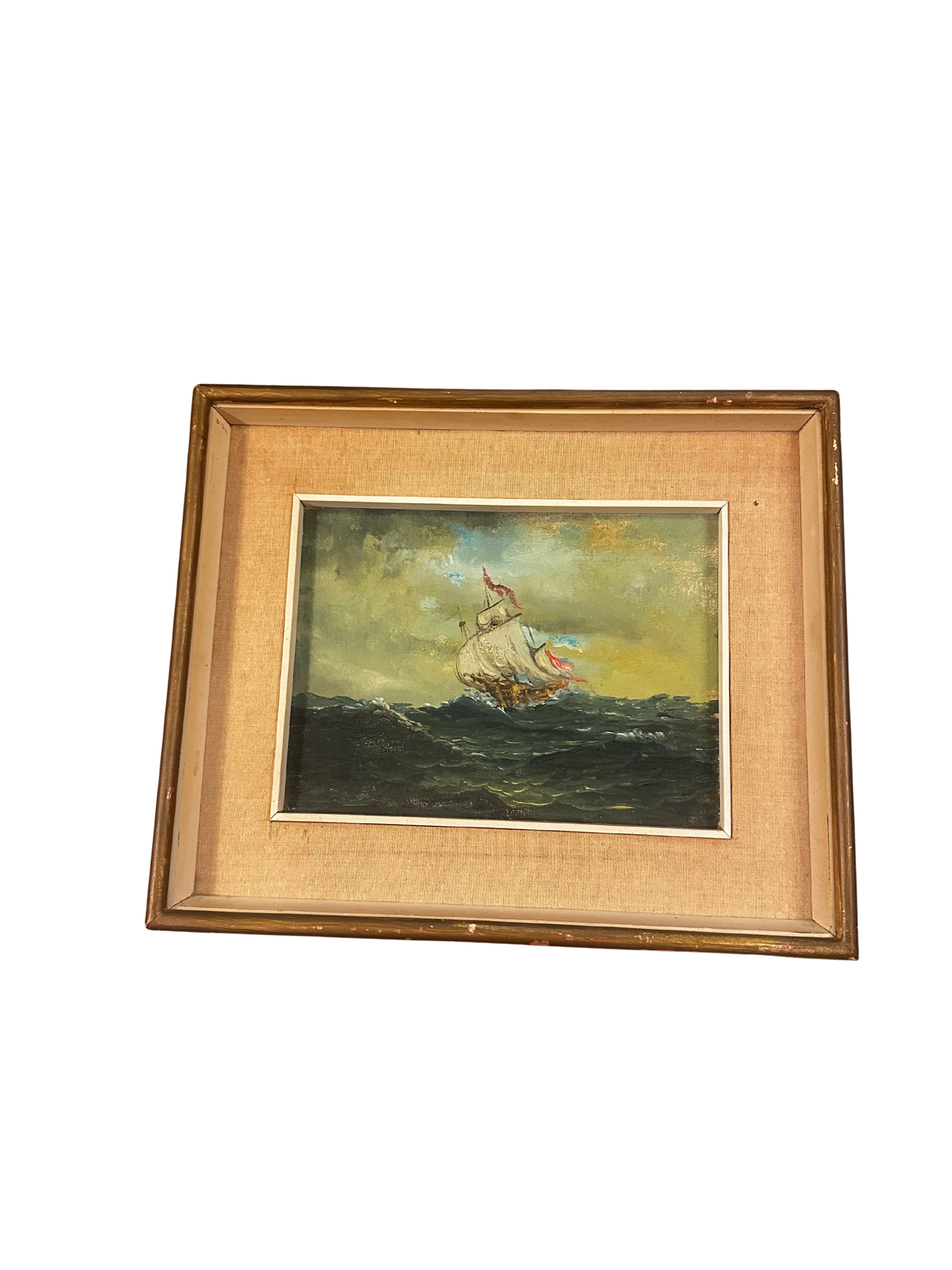 Vintage Oil on Board of Ship - Porcellane Cristalleie Sticker (Articoli Foto G. Casemurate Ravenna) - Italy